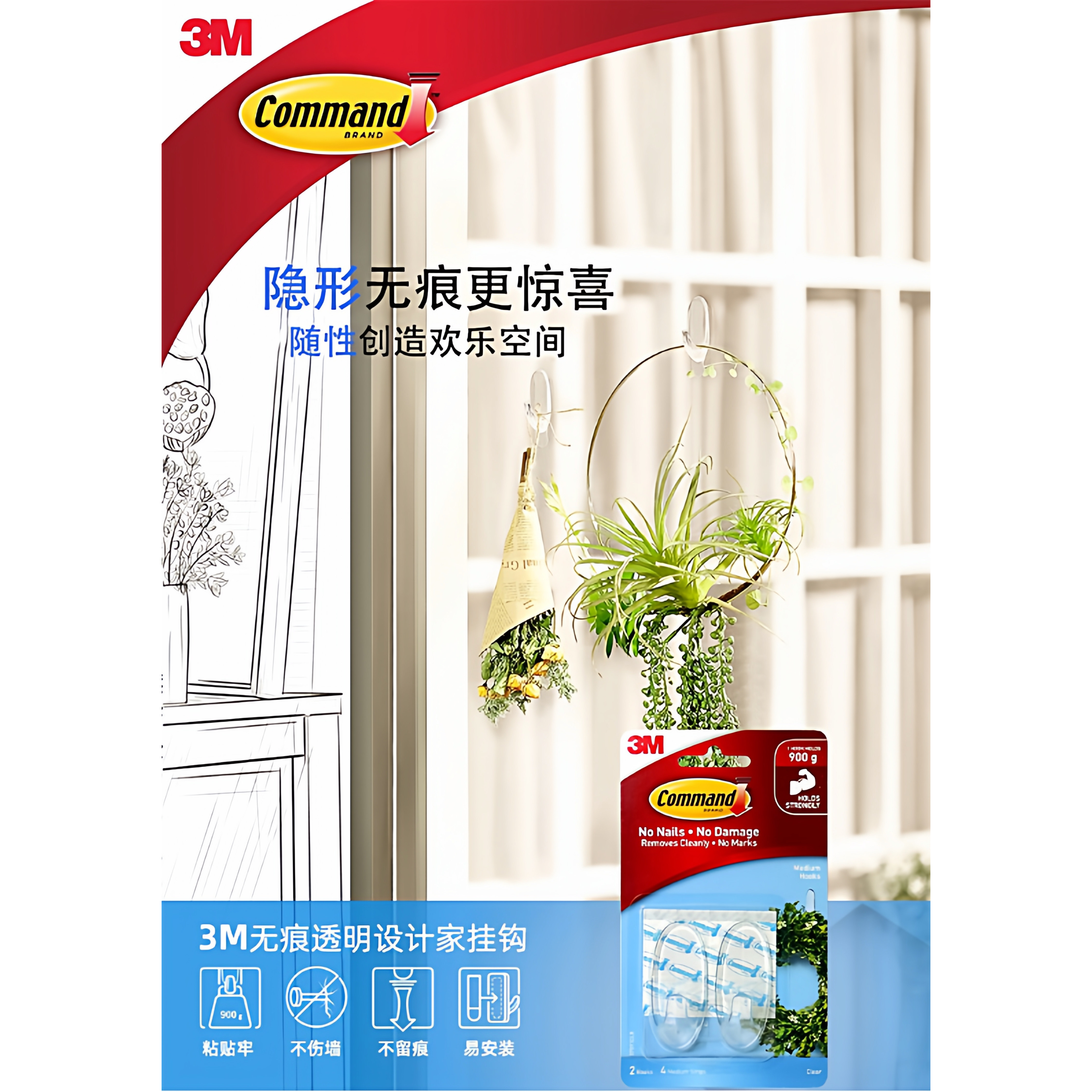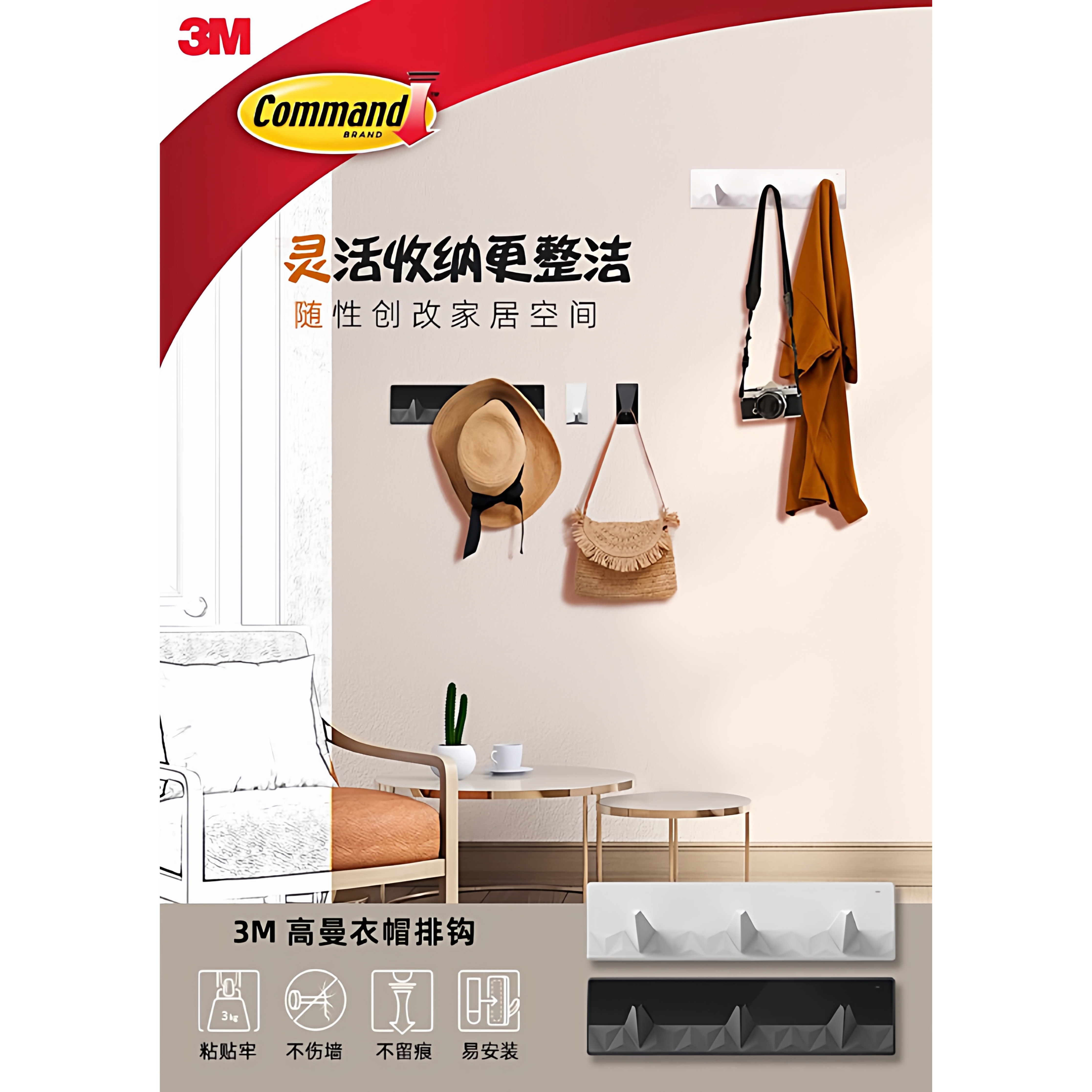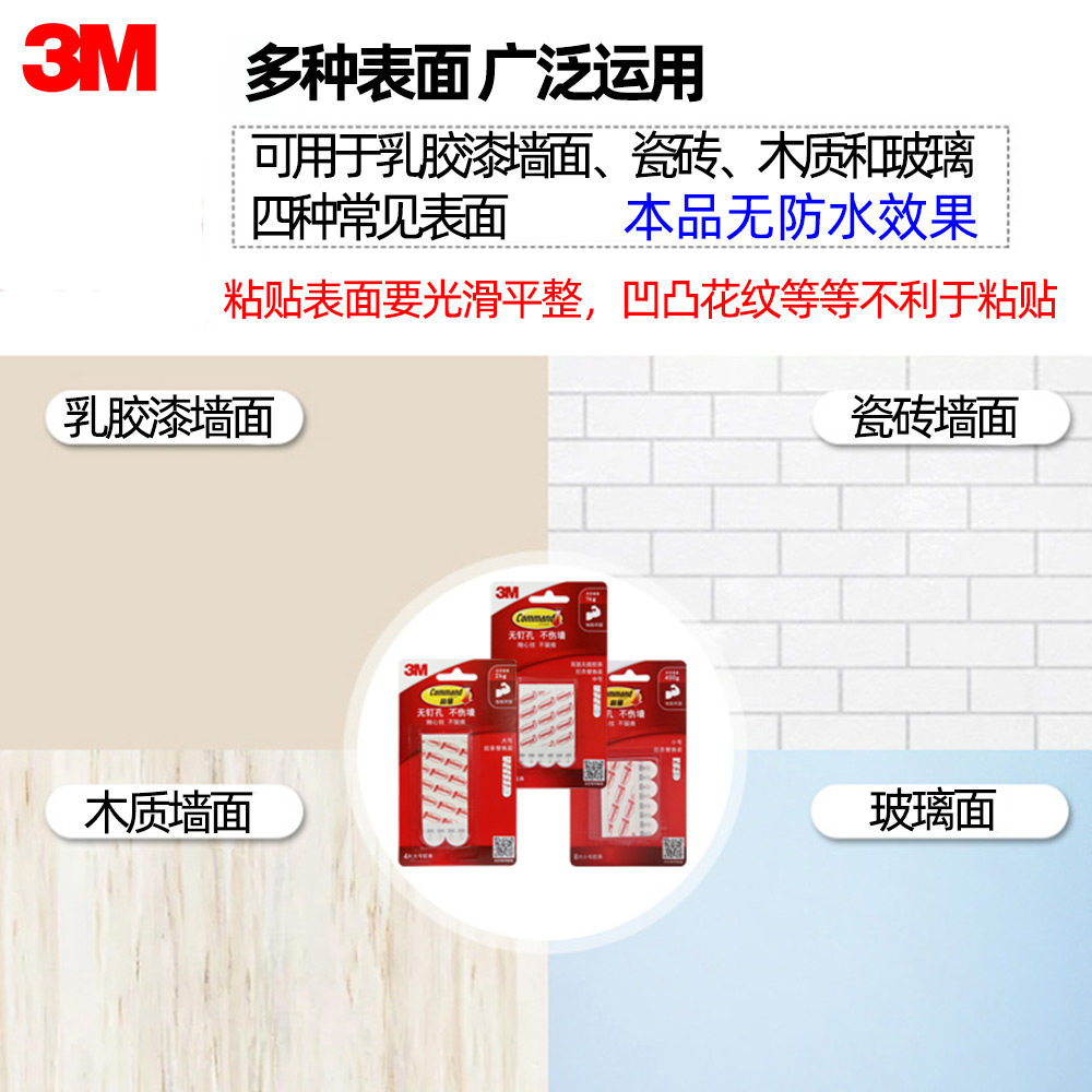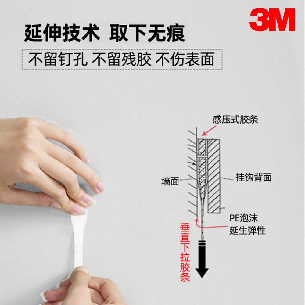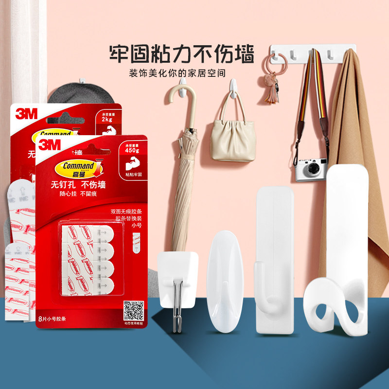 📚 3M无痕挂钩贴高曼无痕双面胶条挂钩替换装免打孔不伤墙粘贴牢固强力双面胶设计透明防水挂钩3M挂钩无痕粘钩
