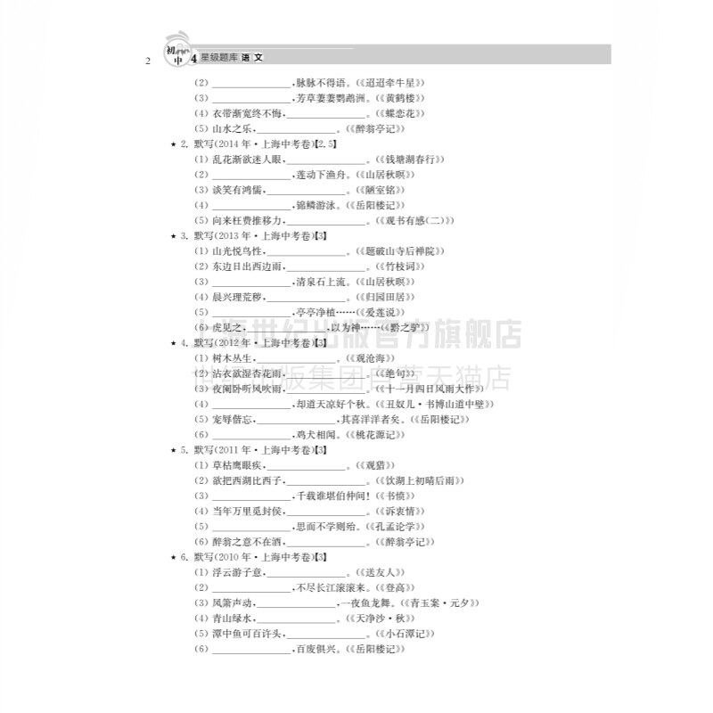 📚 初中四星级题库语文 古诗文 文言文 中考作文 中考冲刺刷题 上海科技教育出版社