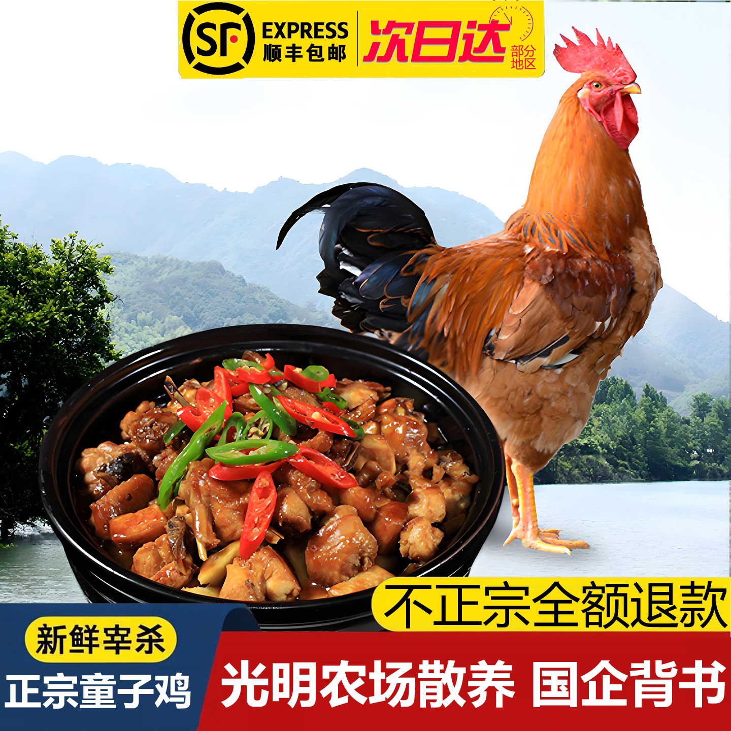 📚 光明生态农场散养童子鸡新鲜鸡肉现杀整只生鲜农家散养未打鸣公鸡