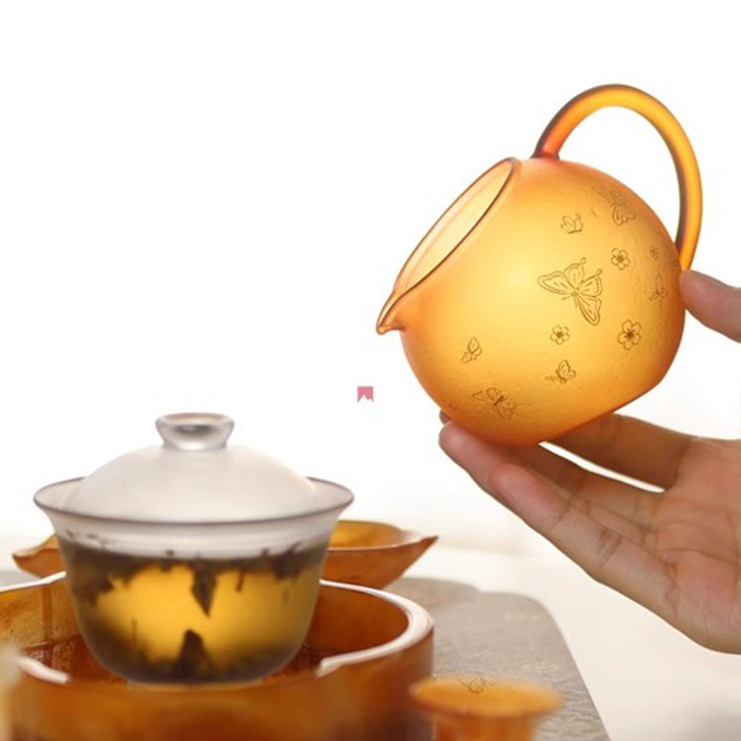 📚 心缘堂十二花神琉璃公道杯琥珀色功夫茶具分茶器温茶器鹰嘴匀茶杯