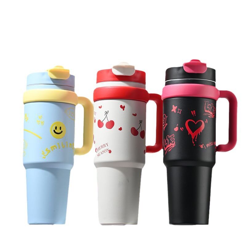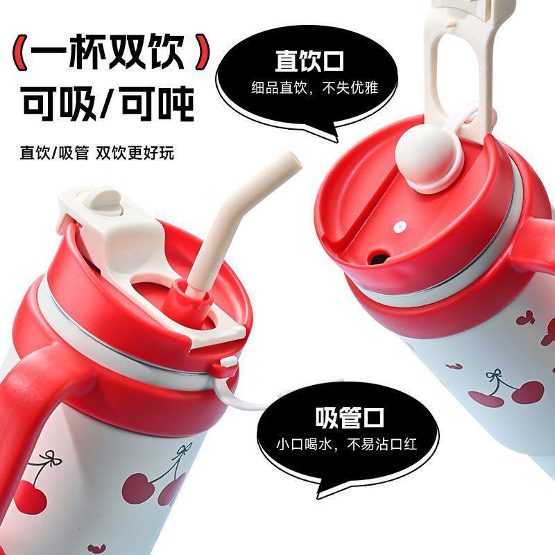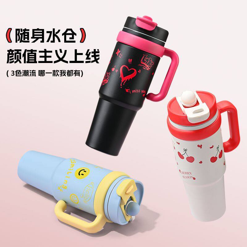 📚 新款巨无霸吸管保温杯大容量水杯女吨吨大水壶带把手保冷冰霸杯子