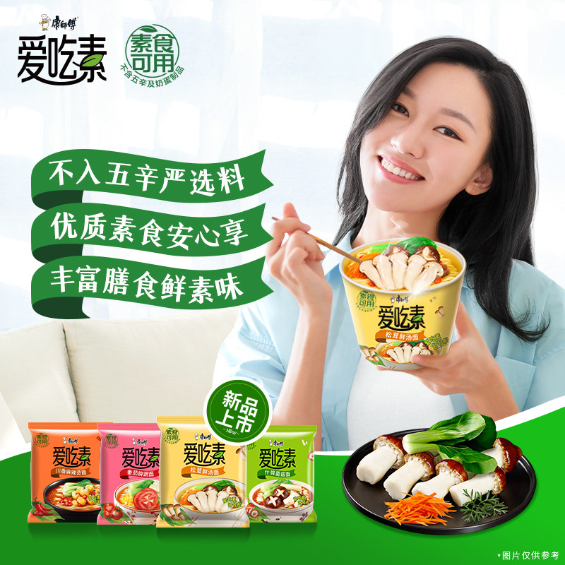 📚 康师傅爱吃素纯素方便面番茄菌菇面寺院素食面速食泡面素面整箱批