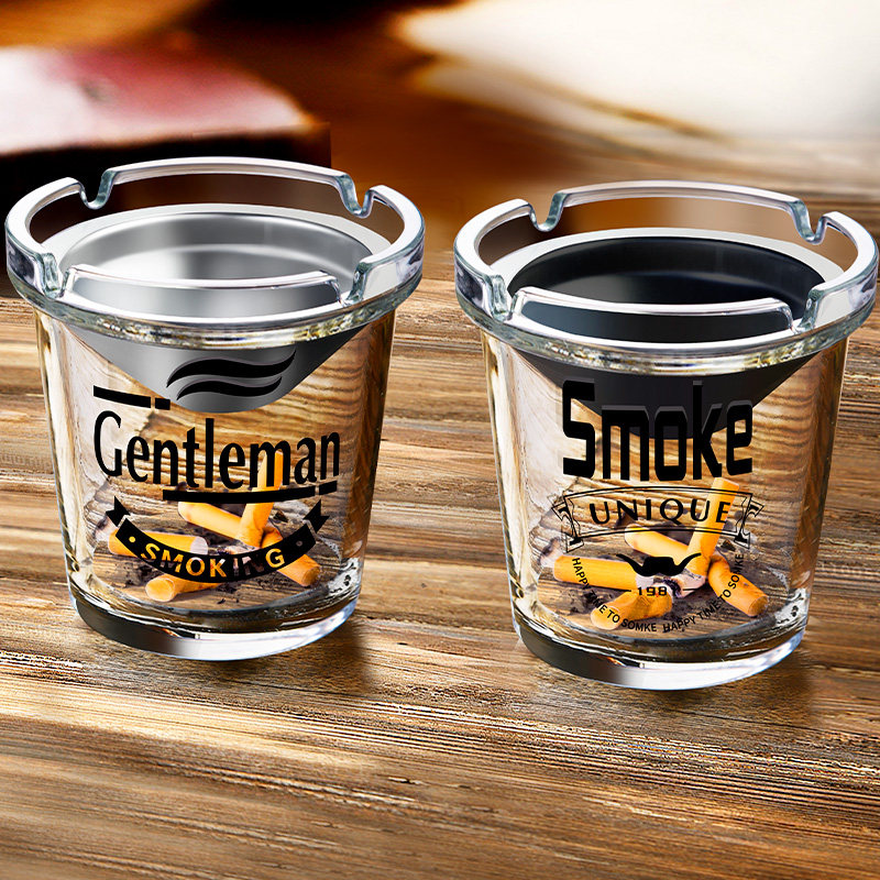 📚 玻璃烟灰缸防飞灰创意家用客厅轻奢高级感办公室防风烟缸带盖宿舍