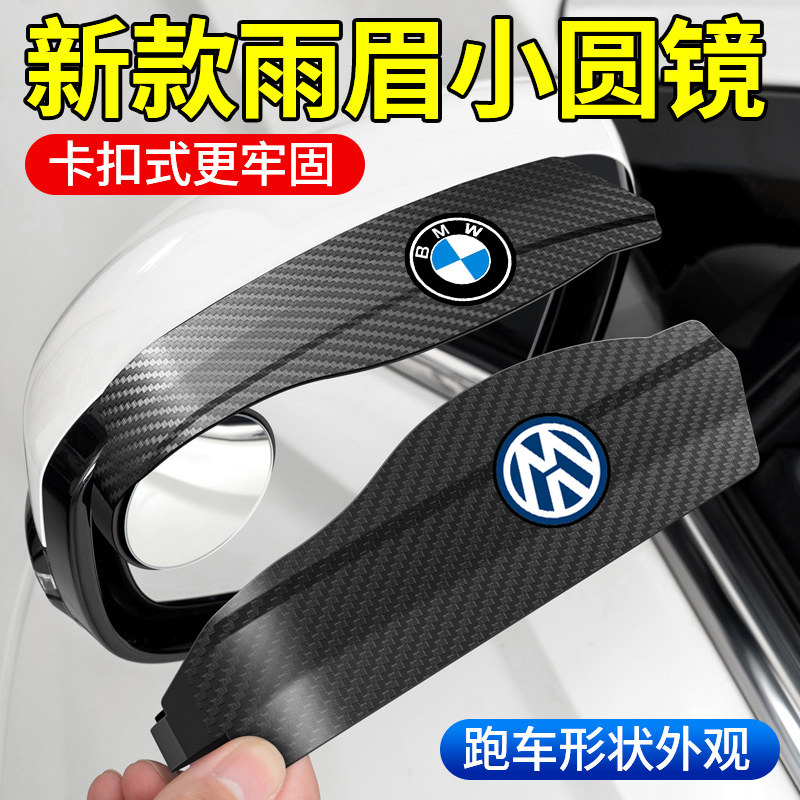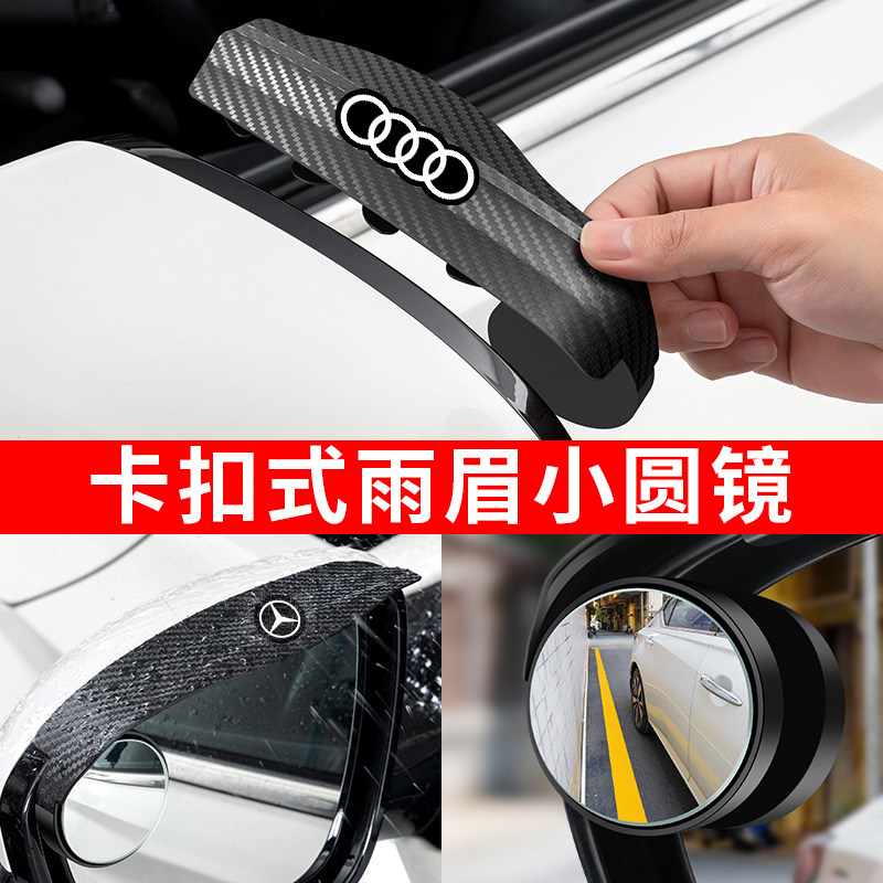 📚 汽车后视镜雨眉小圆镜一体反光镜盲区镜倒车辅助镜遮挡雨板防雨水