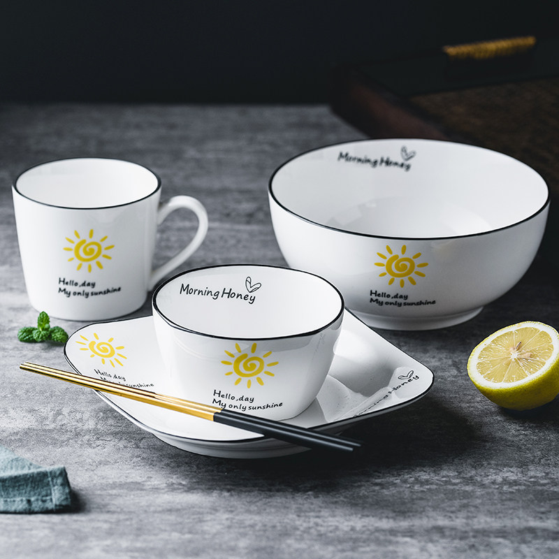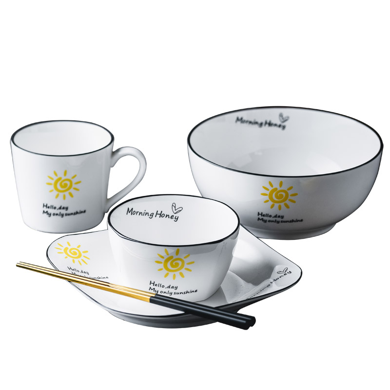 📚 碗筷套装单人一套精致餐具一人食创意情侣2人碗碟家用简约小清新