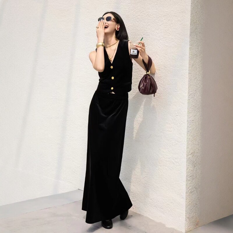 📚 西装马甲背心金丝绒慵懒风套装裙2025新款爆款两件套高级感套装