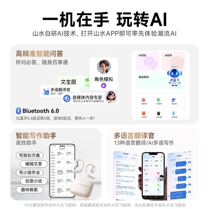 📚 Sansui/山水W12蓝牙翻译耳机同声传译耳挂式无线商务耳机久戴不痛