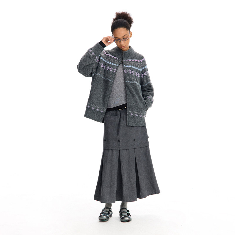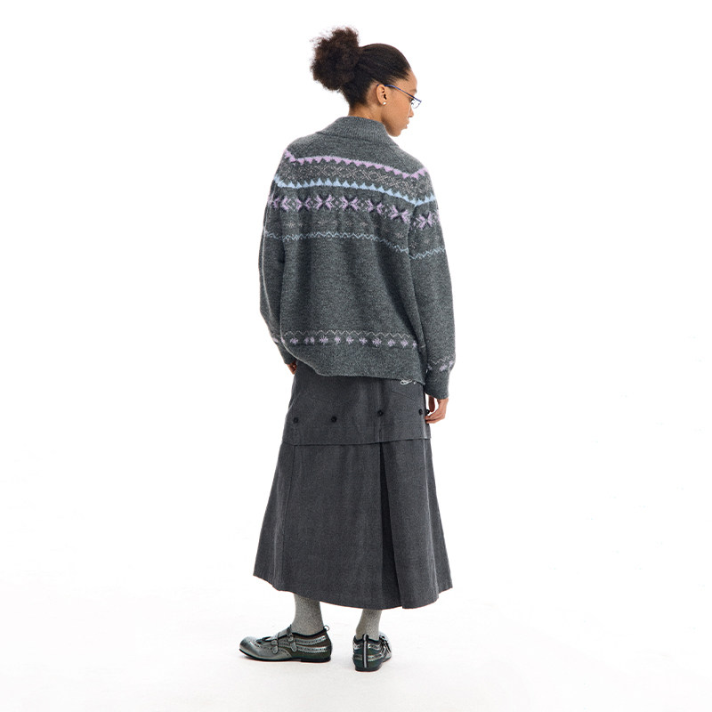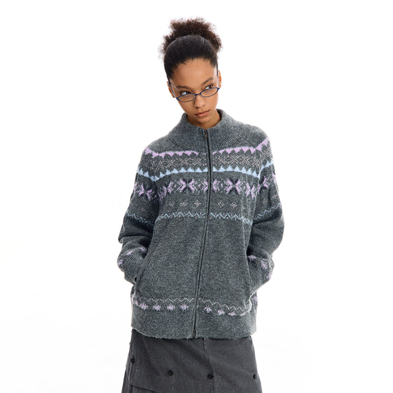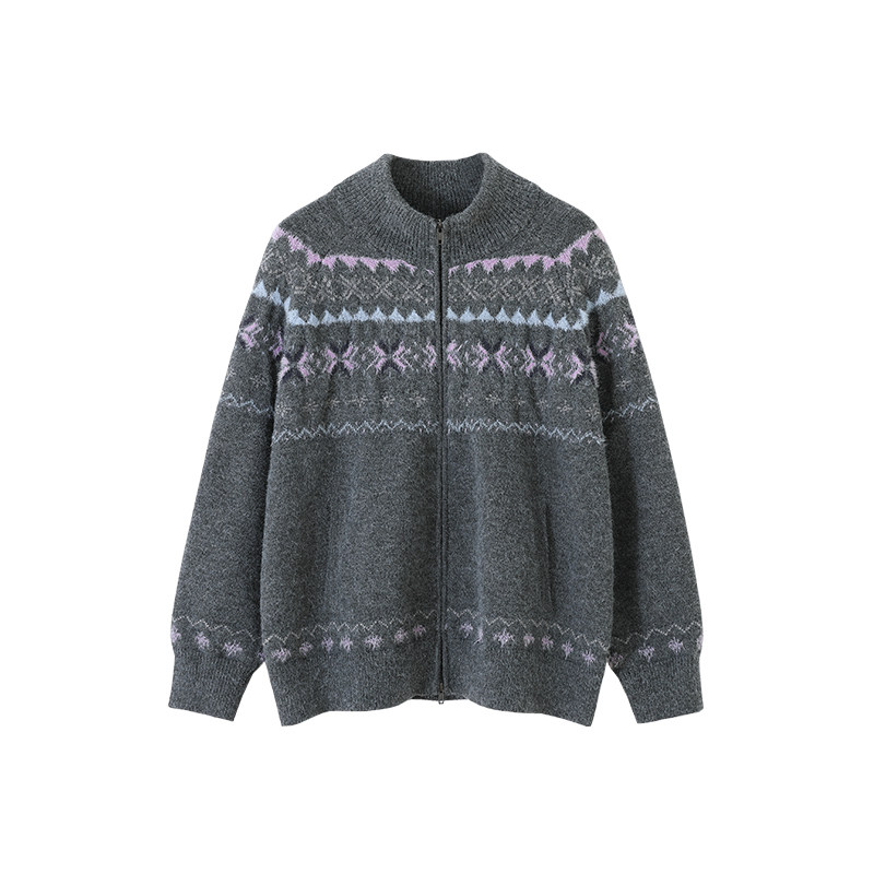📚 CONP 24AW 费尔岛提花抓毛毛衣圆领拉链外套