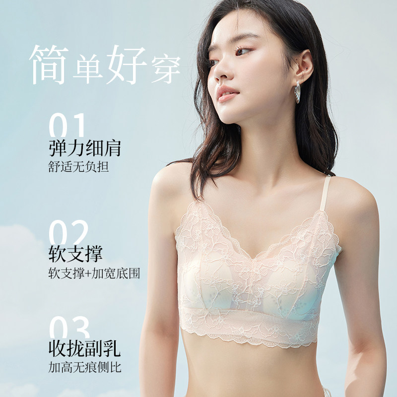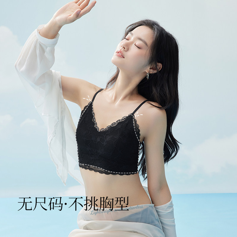 📚 提拉聚拢美背背心无尺码全蕾丝内衣女不挑胸型舒适浪漫吊带文胸