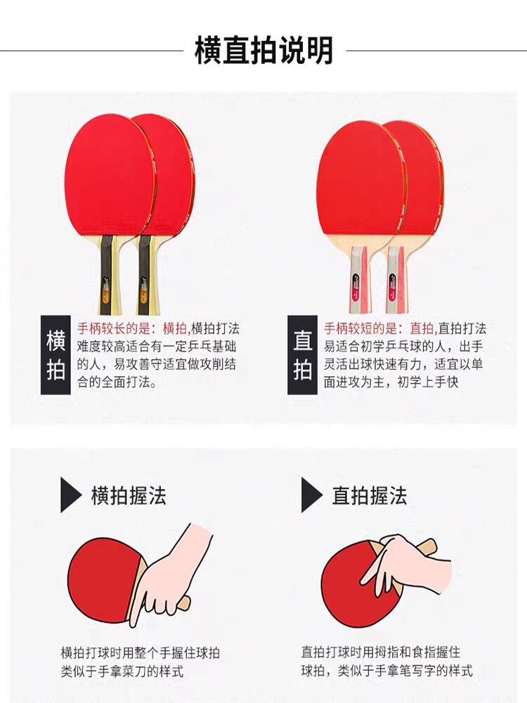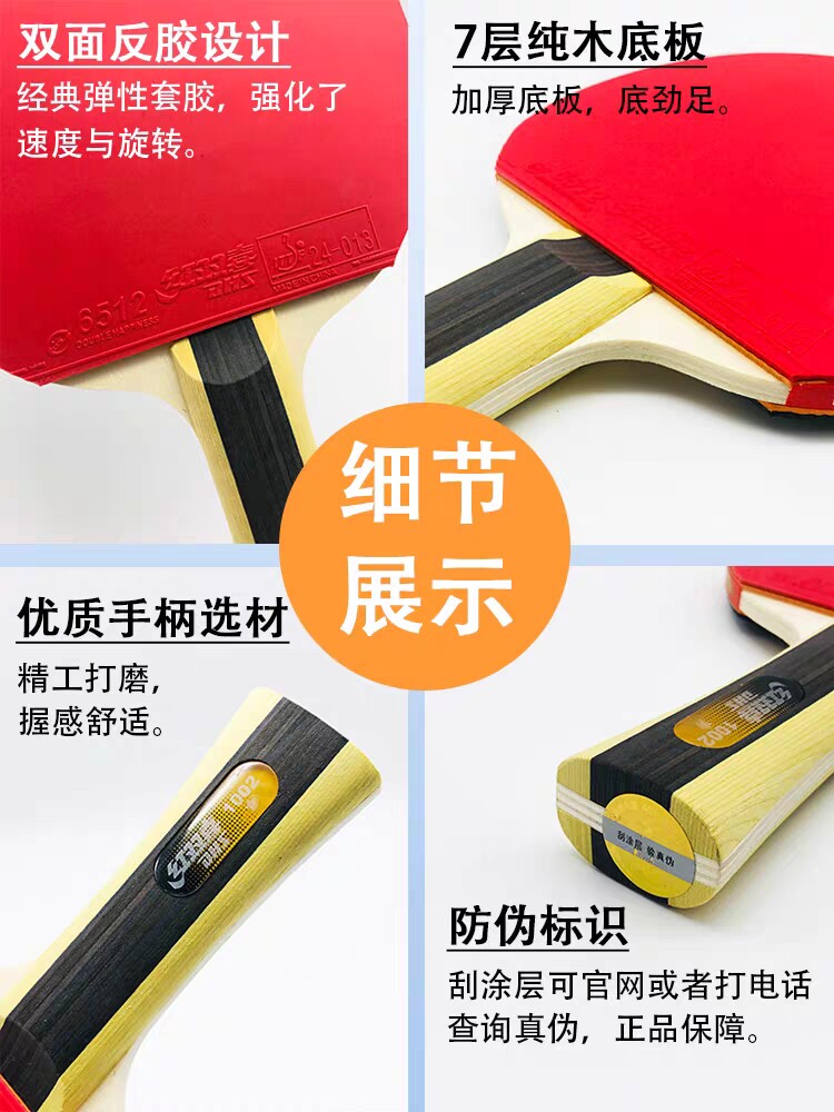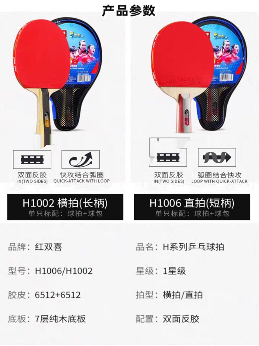 📚 正品红双喜乒乓球拍一二三星横拍直拍双面反胶成品拍高弹送球拍套