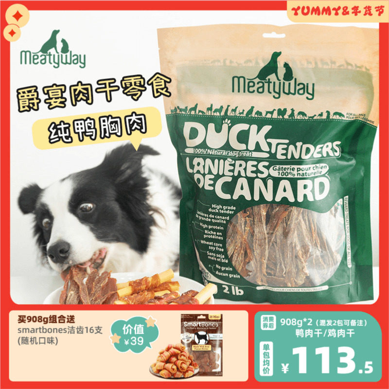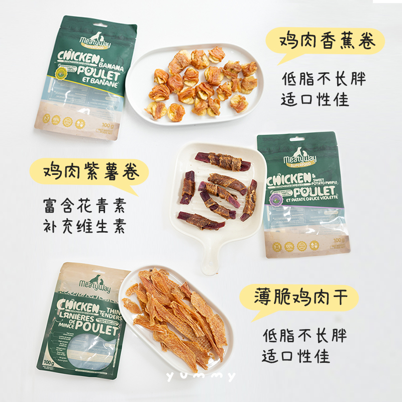 📚 爵宴鸭肉干狗零食Meatyway鸡肉干鸭肉红薯卷狗狗烘干磨牙训练奖励