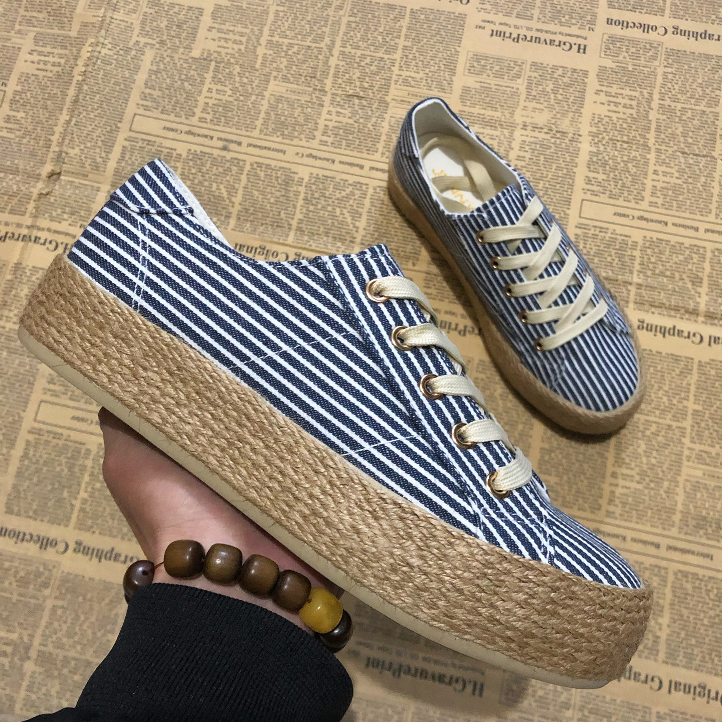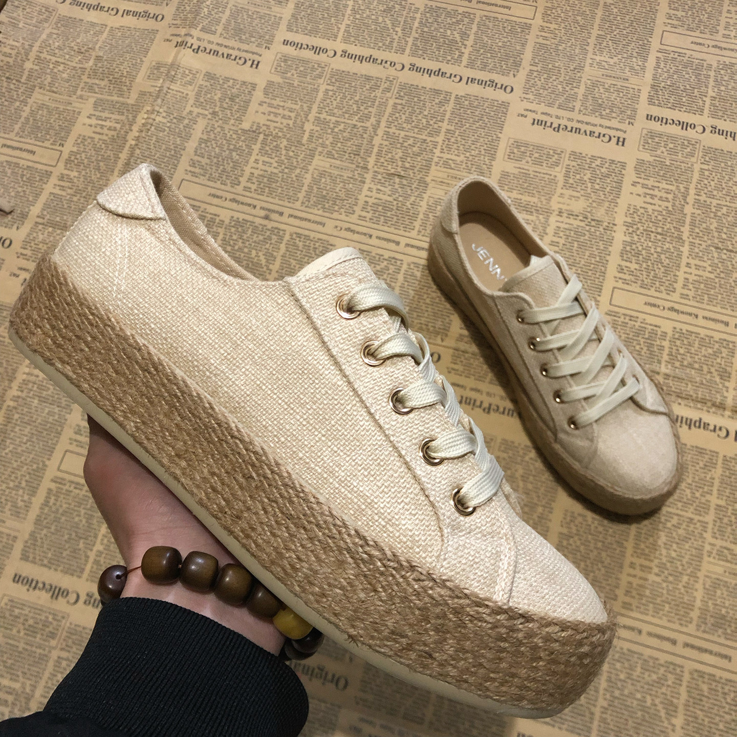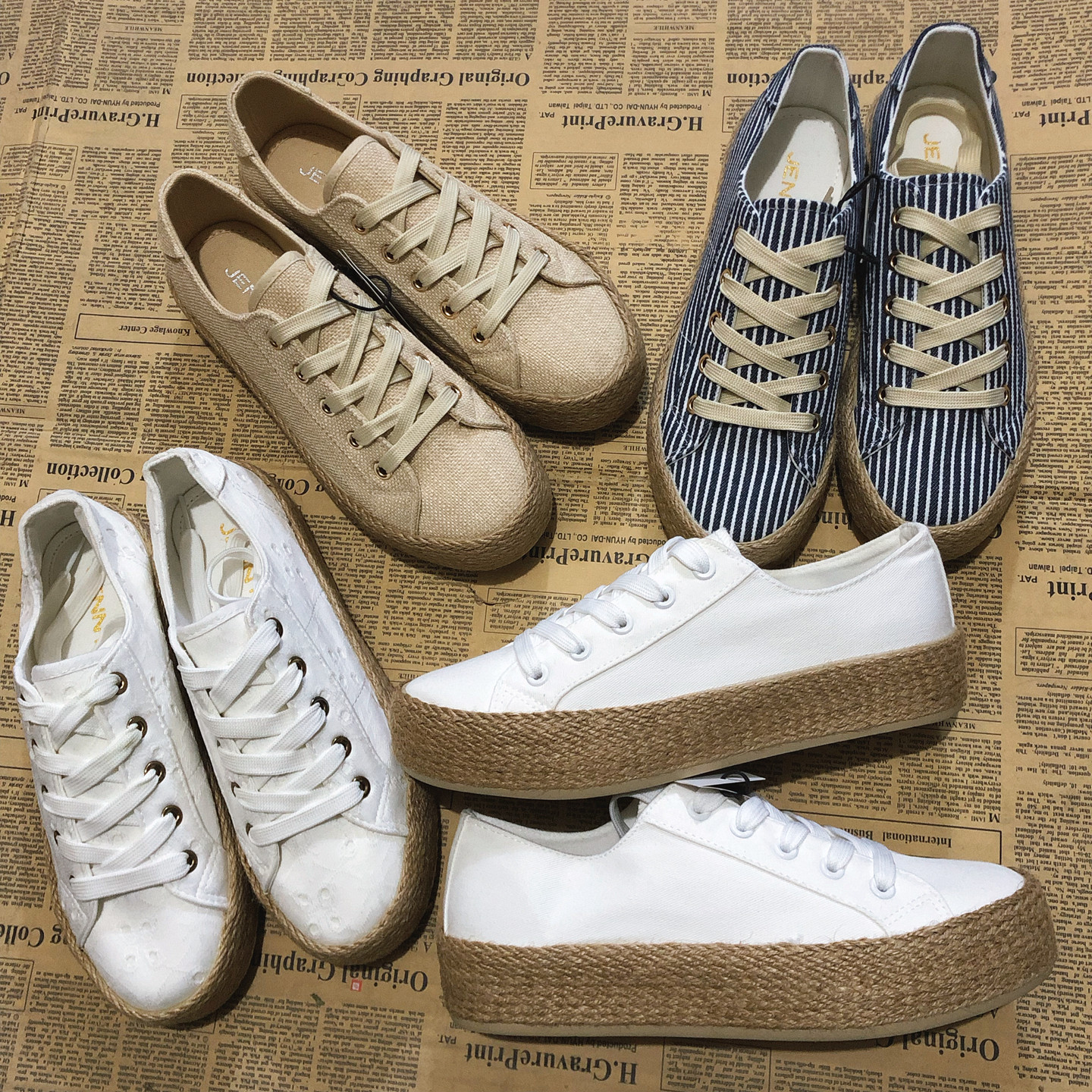 📚 外贸麻边厚底帆布鞋白色女41码40码出口欧美小白鞋休闲百搭田园款