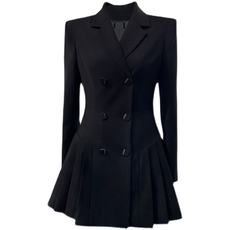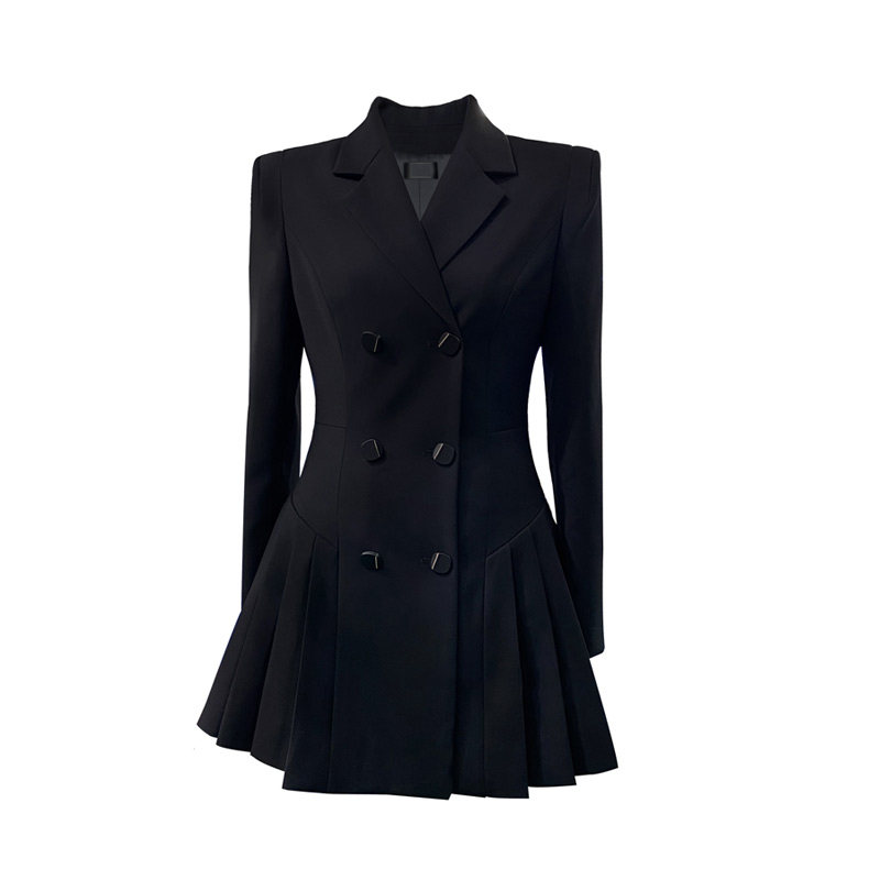 📚 徐睿知学院风显瘦百褶西装裙女2023秋冬设计感黑色收腰连衣裙短裙