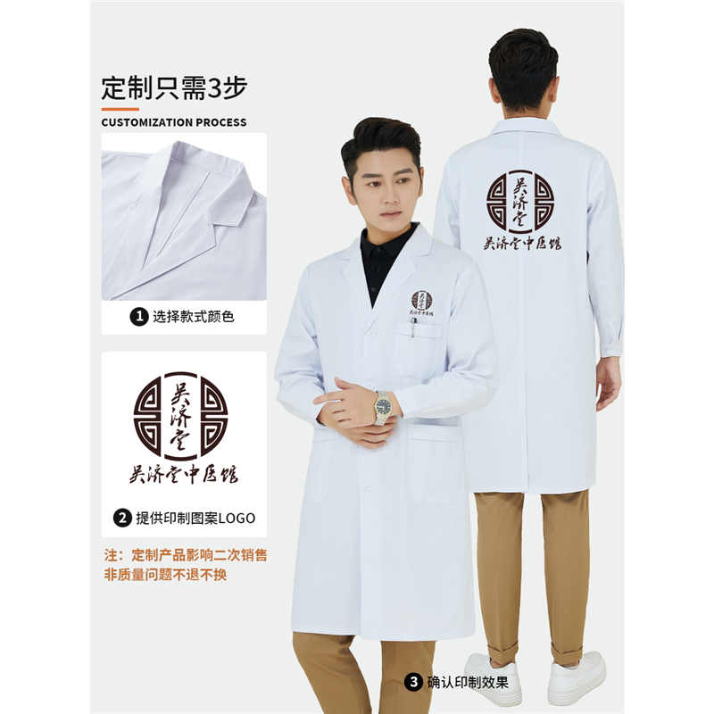 📚 中医馆加厚白大褂工作服长袖理疗药店卫生院诊所高端医美容院定制