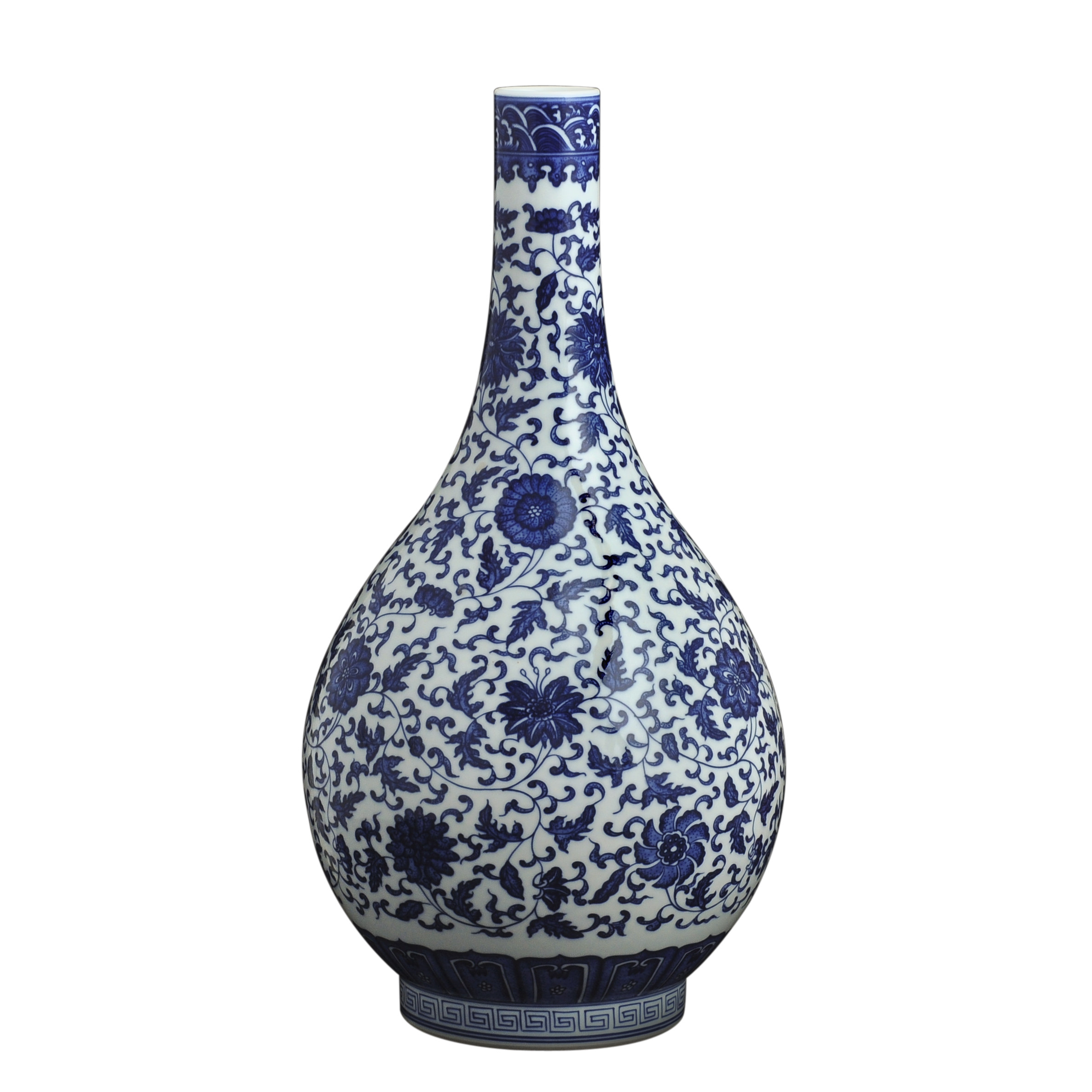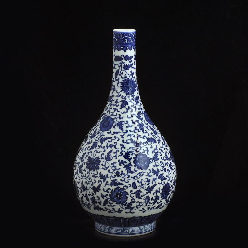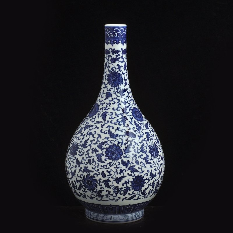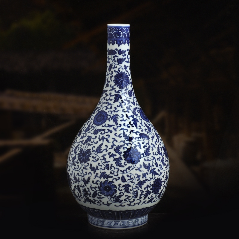 📚 景德镇陶瓷器仿古手工绘制青花瓷花瓶缠枝莲纹胆瓶台面工艺品摆件