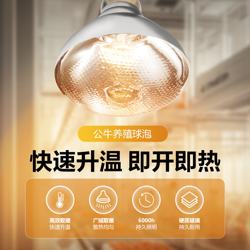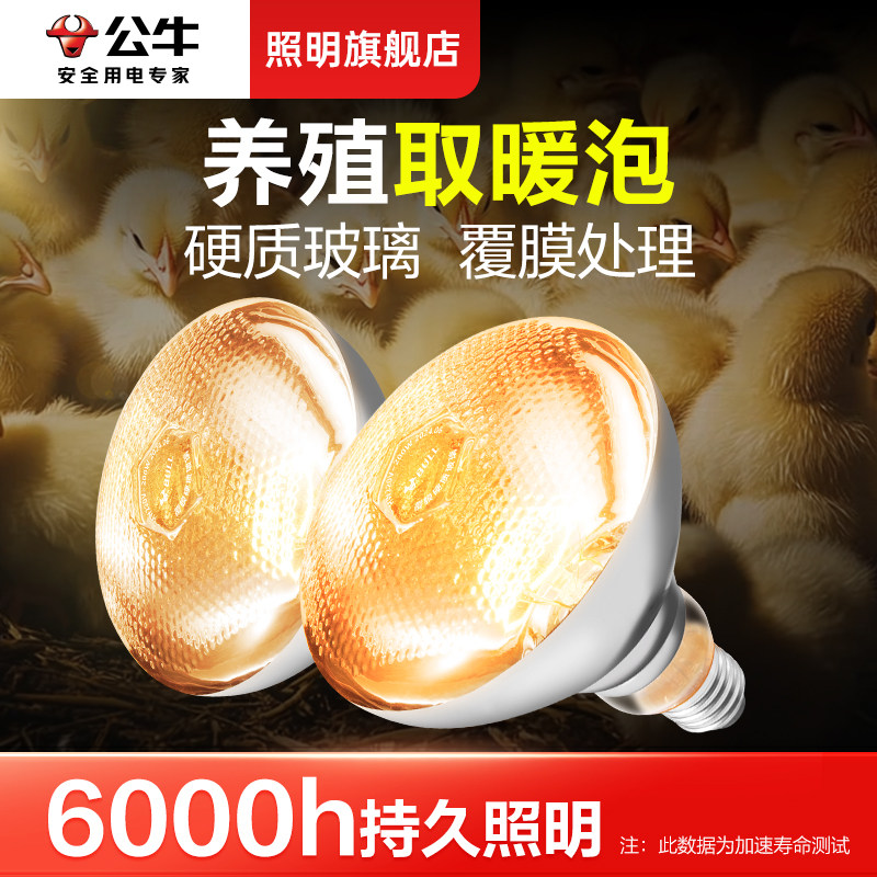 📚 公牛保温灯养殖场专用200W取暖灯泡小鸡仔猪育雏加热宠物烤灯兽用