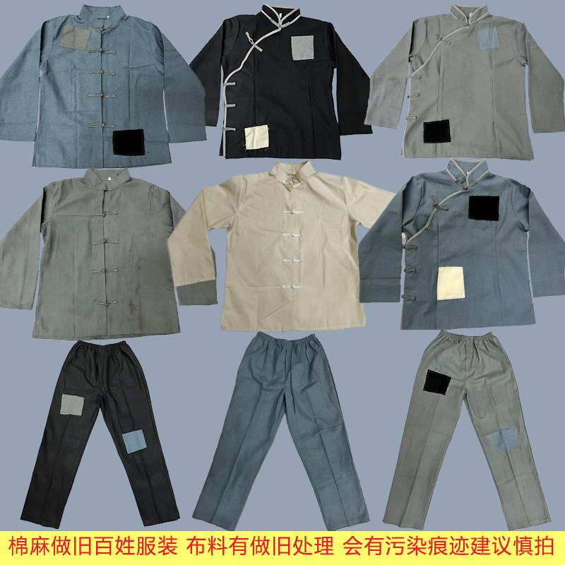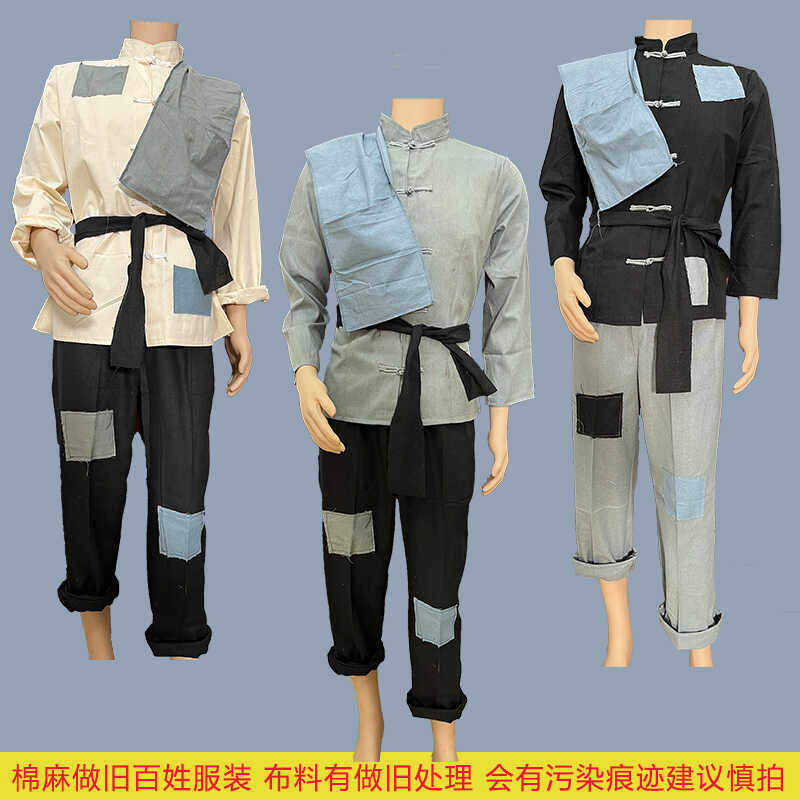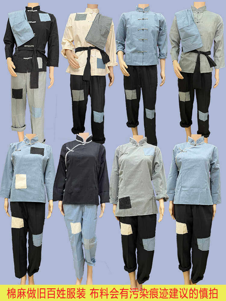 📚 棉麻王二小表演服民国村姑百姓农民衣服老爷爷补丁红军做旧演出服