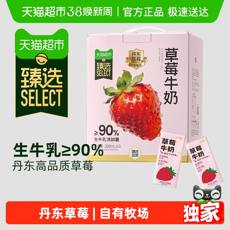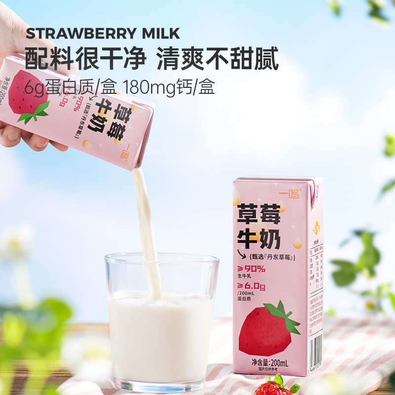 📚 臻选一鸣丹东草莓儿童早餐生牛乳纯香牛奶饮料200ML*16盒送礼整箱