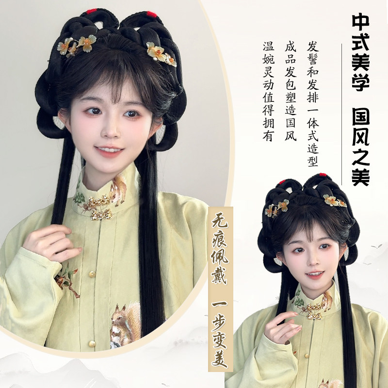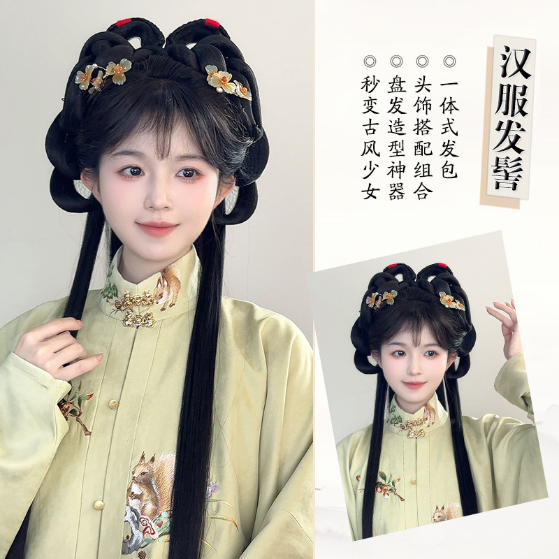 📚 汉服假发盘发髻古风假发包一体式发箍懒人古装假发造型发髻头饰女