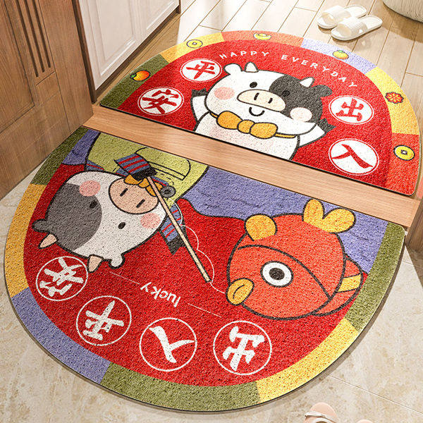 📚 家用出入平安门垫丝圈牛年地垫进门半圆入户门大门口脚垫红色地毯