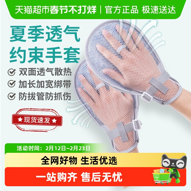 📚 秝客约束手套防抓防拔管医用老人透气束缚手套夏季