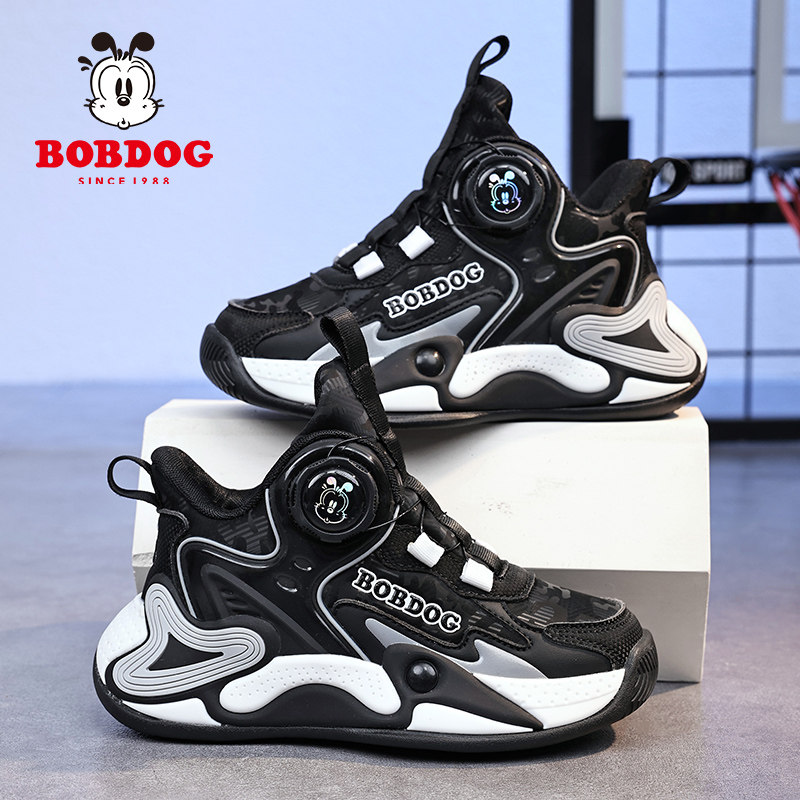 📚 巴布豆女童运动鞋2025春秋季皮面防水中大童旋转纽扣女孩篮球鞋