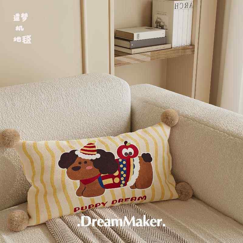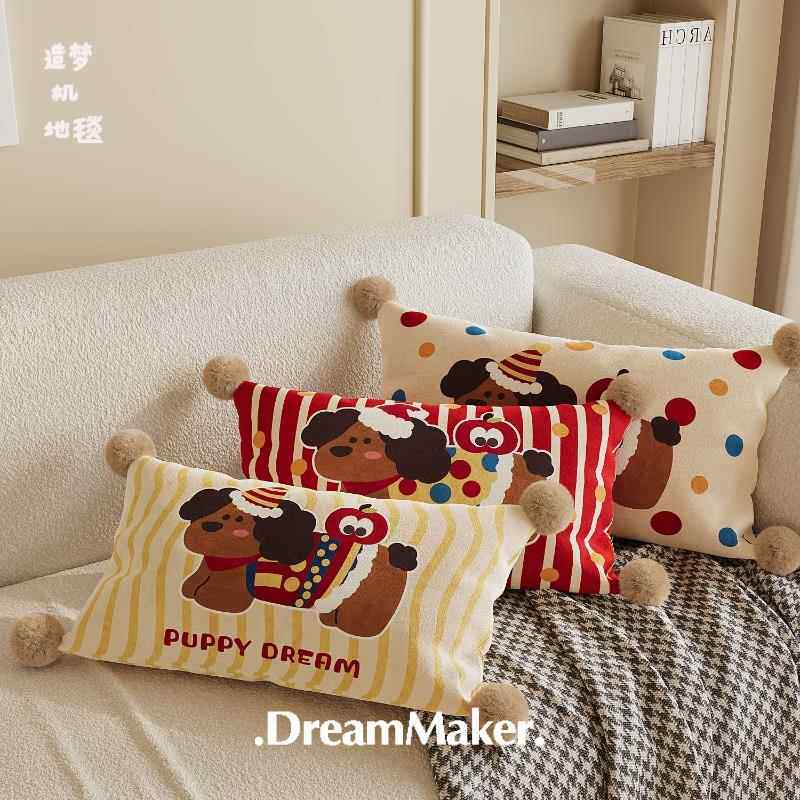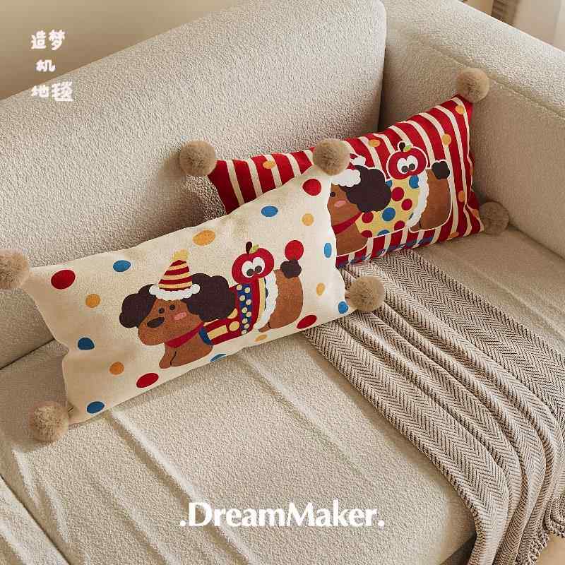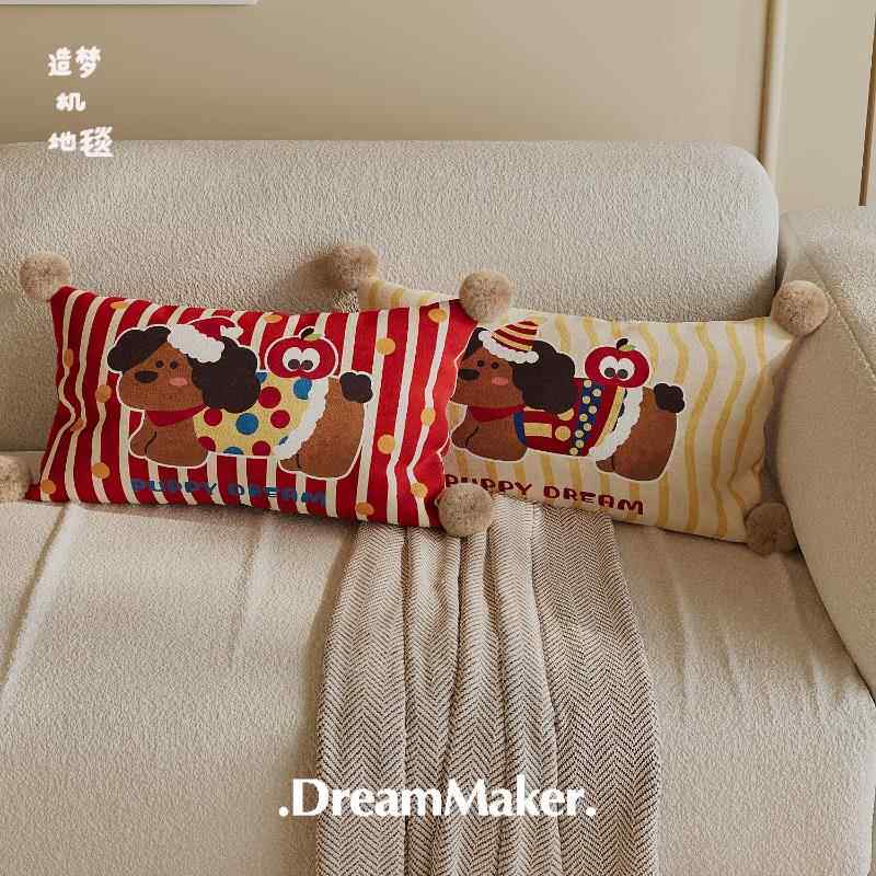 📚 苹果小狗条纹抱枕床头长方形靠垫午睡腰枕卡通沙发靠枕荷兰绒枕套