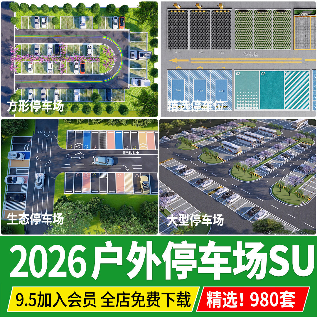 📚 公园户外大型停车场布置图生态停车位平面布局SU模型CAD施工图