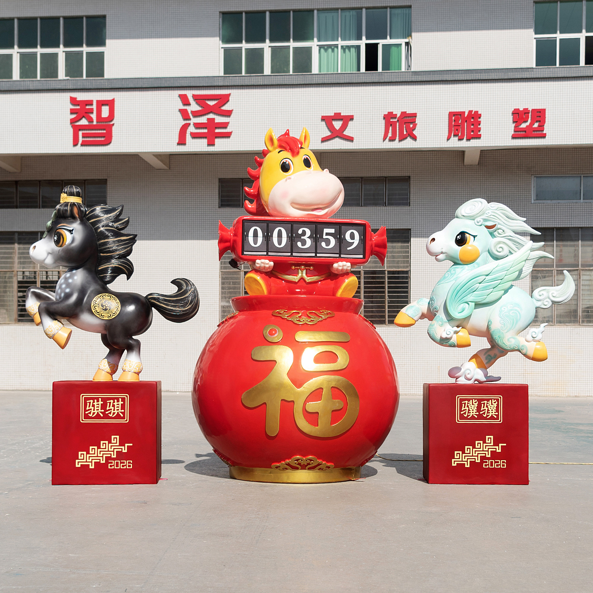 📚 2026新年马雕塑卡通生肖马吉祥物户外商场广场景区装饰品美陈摆件