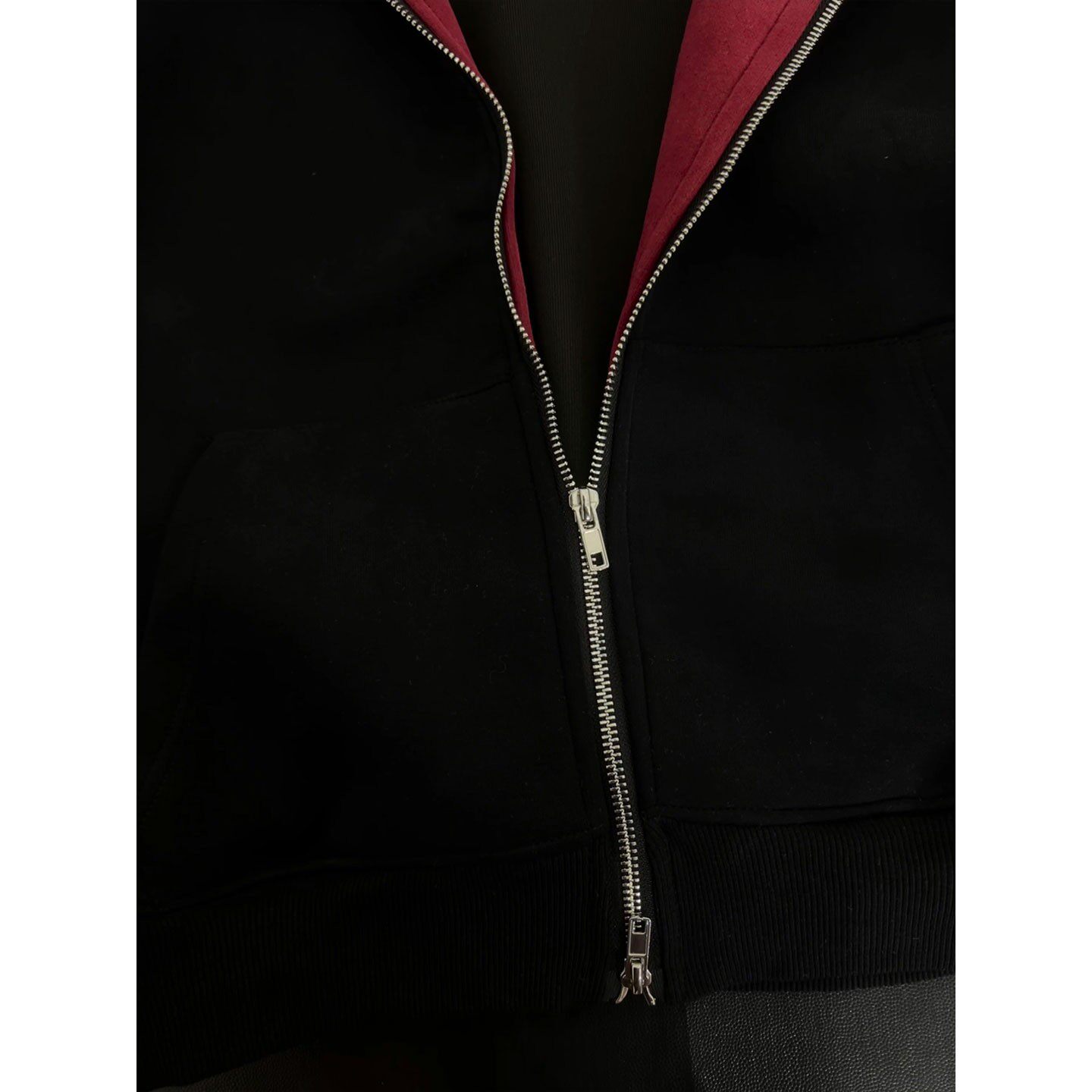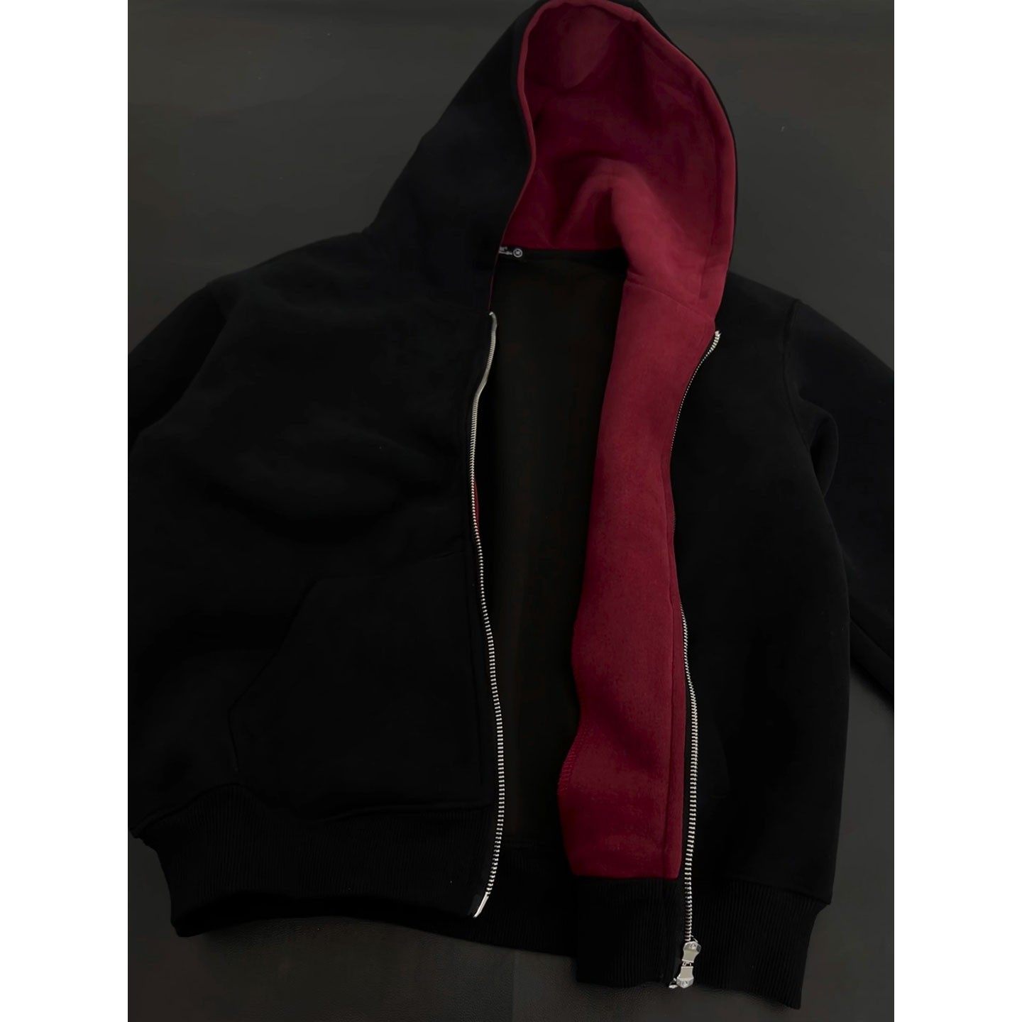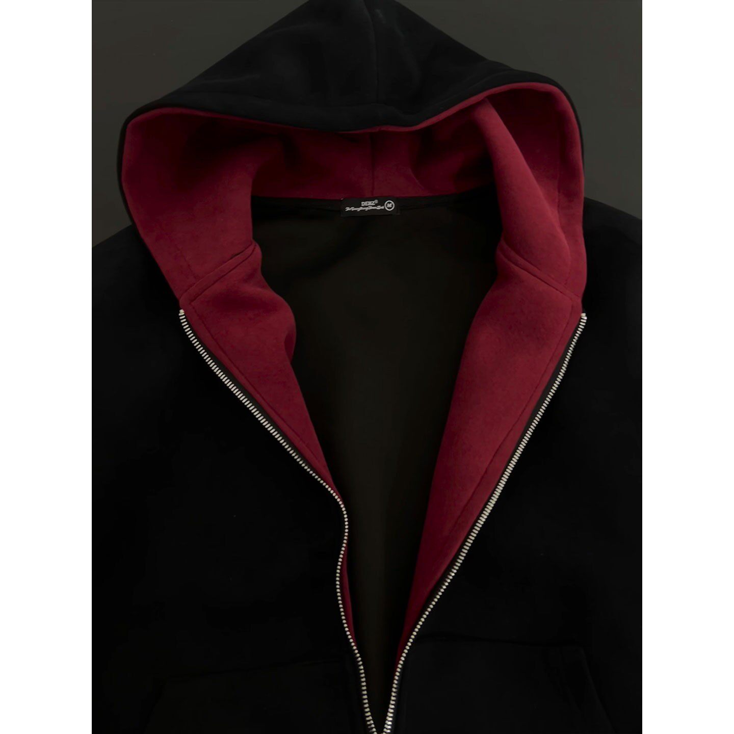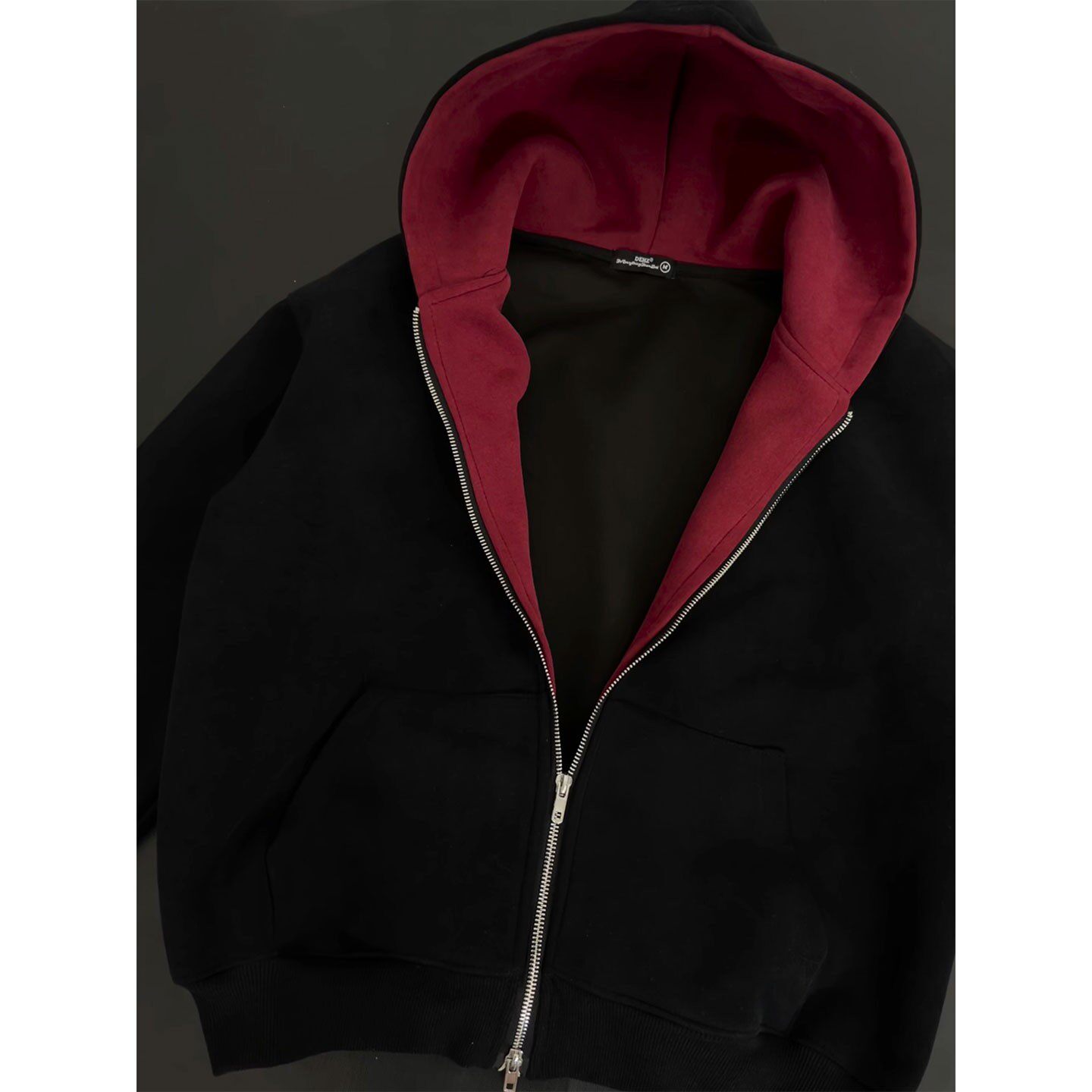 📚 黑色红内开衫连帽卫衣男秋冬美式重磅硬挺夹克高级感宽松情侣外套