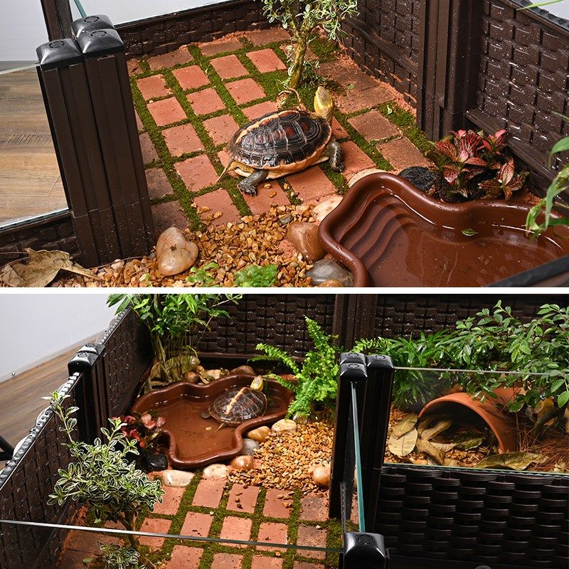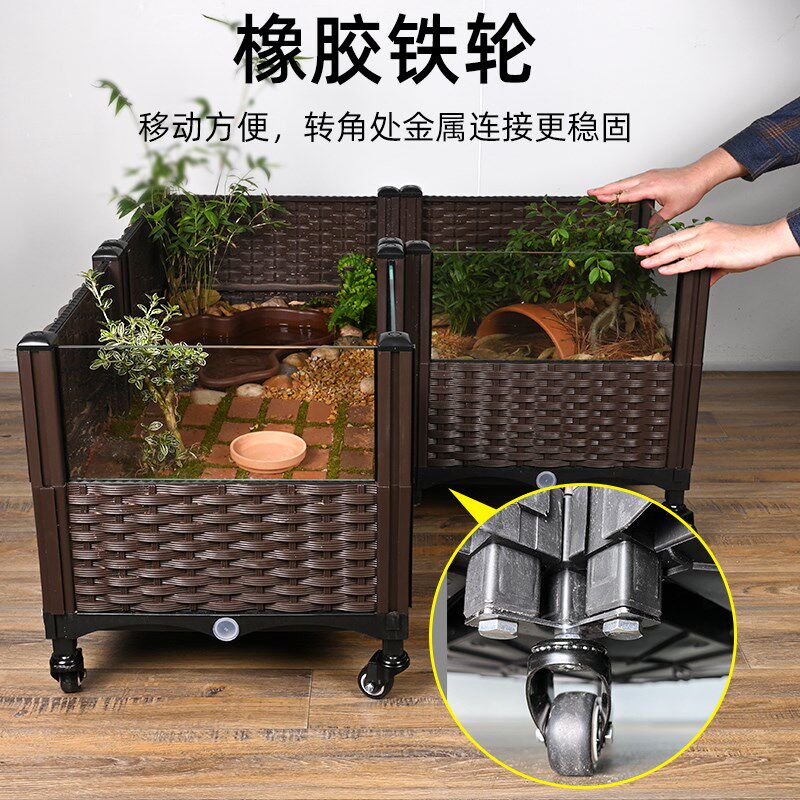 📚 黄缘龟专用饲养箱半水龟生态造景绿植物缸套餐带轮子可移动超大缸