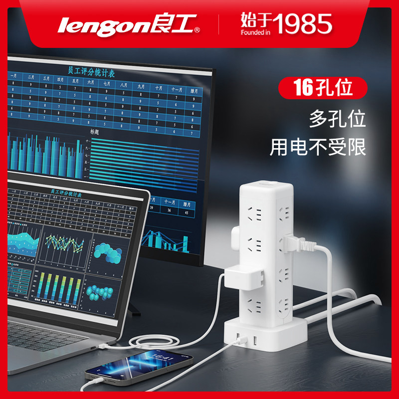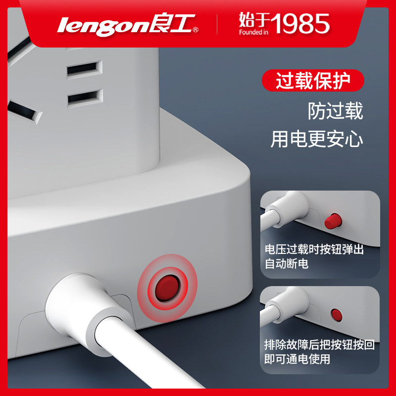 📚 良工多功能立式插座面板多孔带过载接线板usb排插办公家用插线板