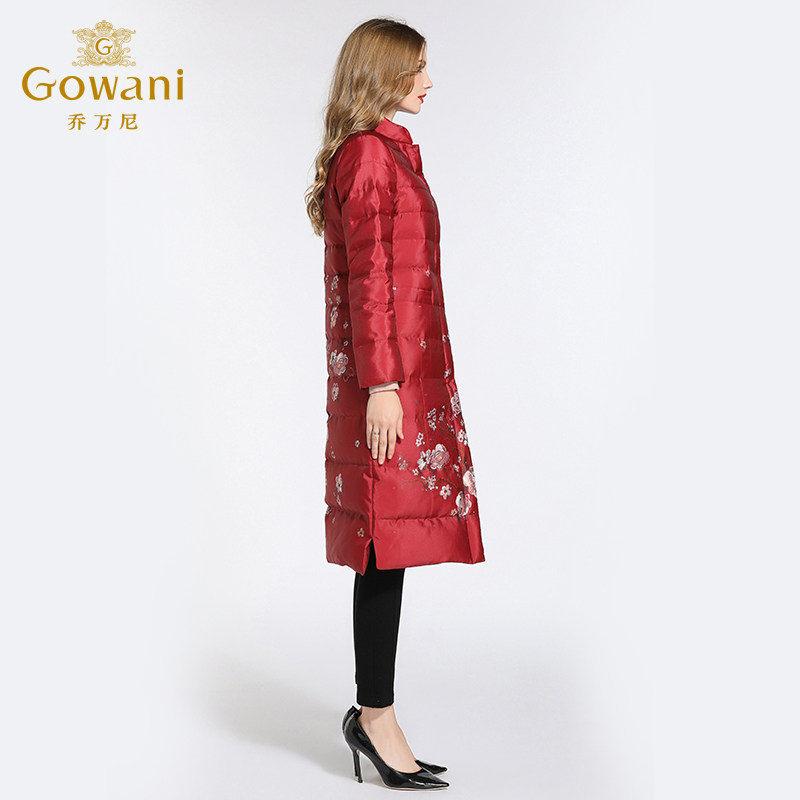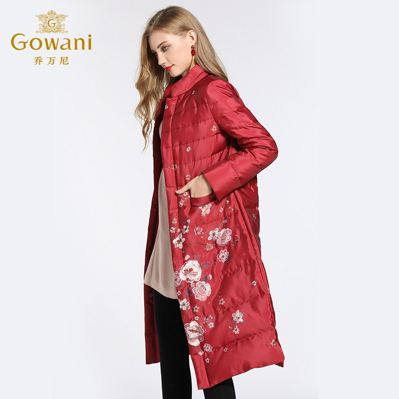 📚 乔万尼羽绒服女商场新款复古名族风新年红色印花宽松保暖过膝长款