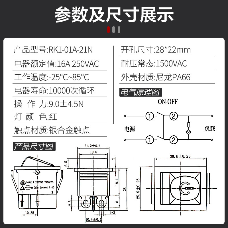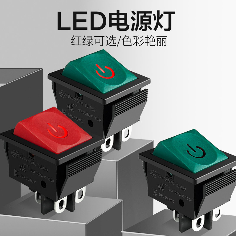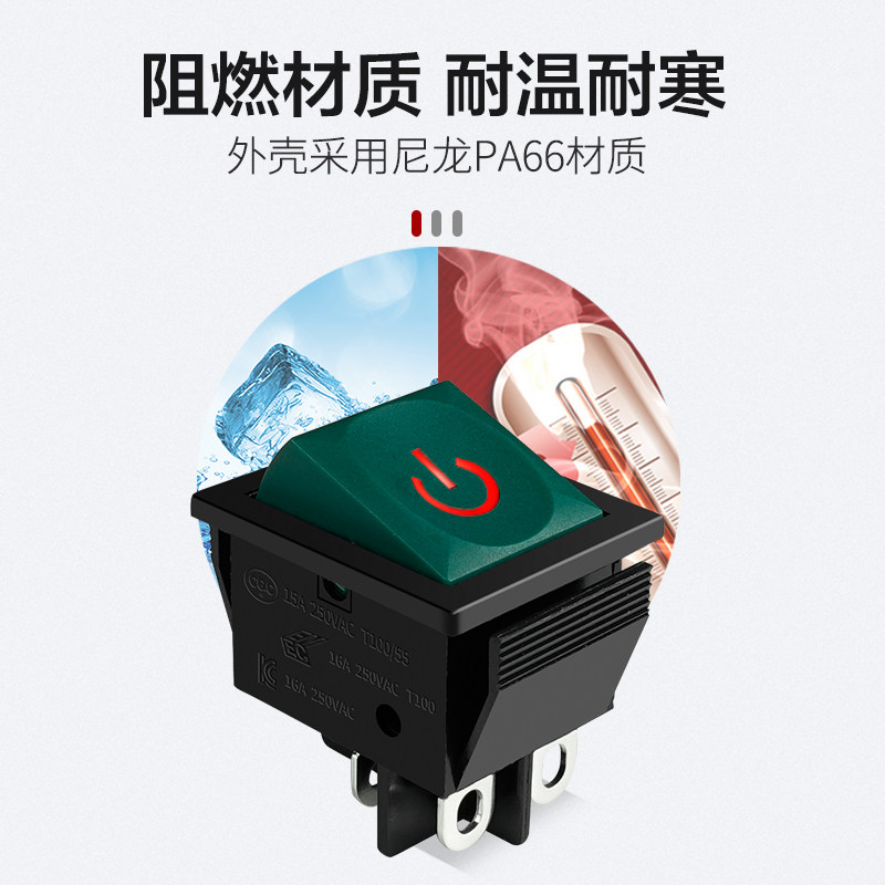 📚 船型开关 16A大电流led带灯kcd2大功率4脚阻燃耐温220v两档自锁
