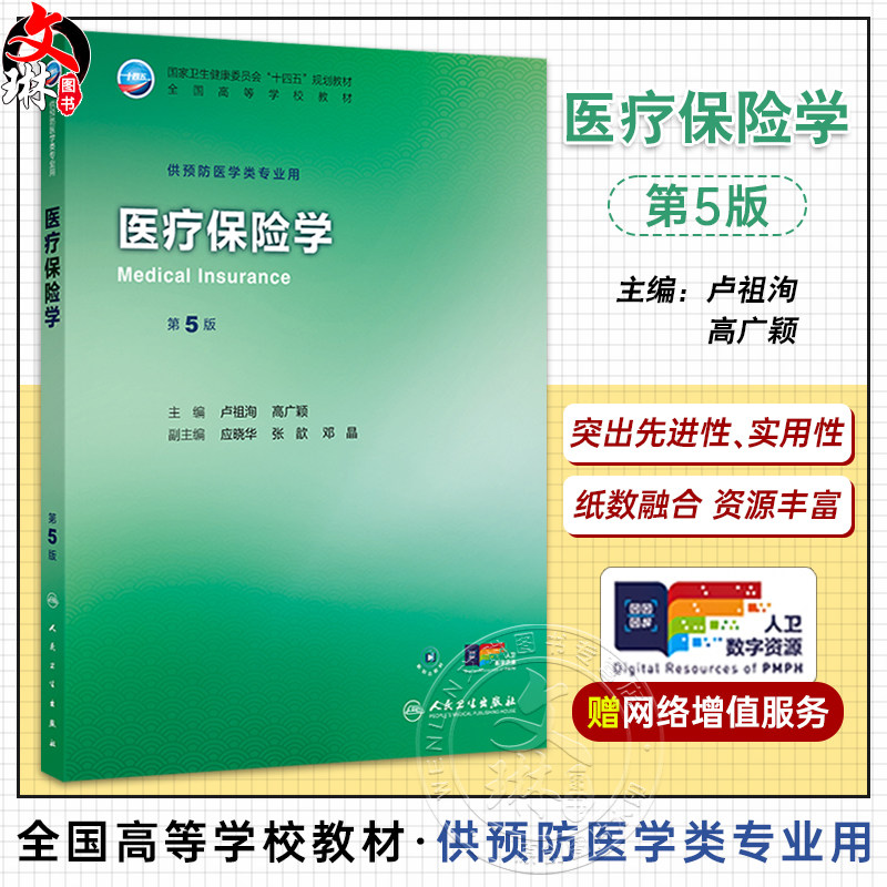 📚 医疗保险学 第5五版 十四五规划教材 全国高等学校教材 卢祖洵 高广颖 主编 供预防医学类专业用 9787117383523 人民卫生出版社