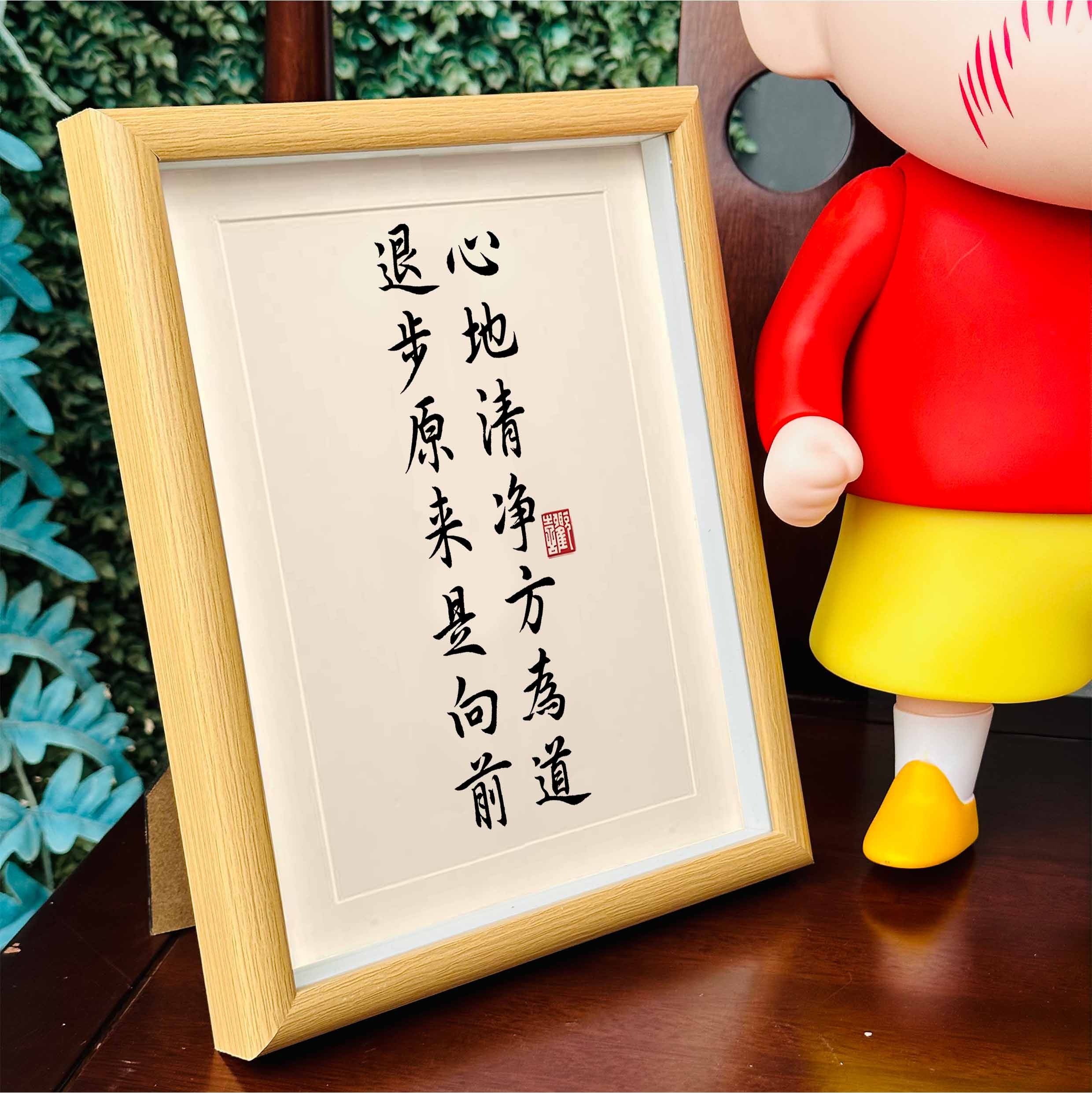 📚 心地清净方为道退步原来是向前相框摆台书法摆件书房办公桌装饰画
