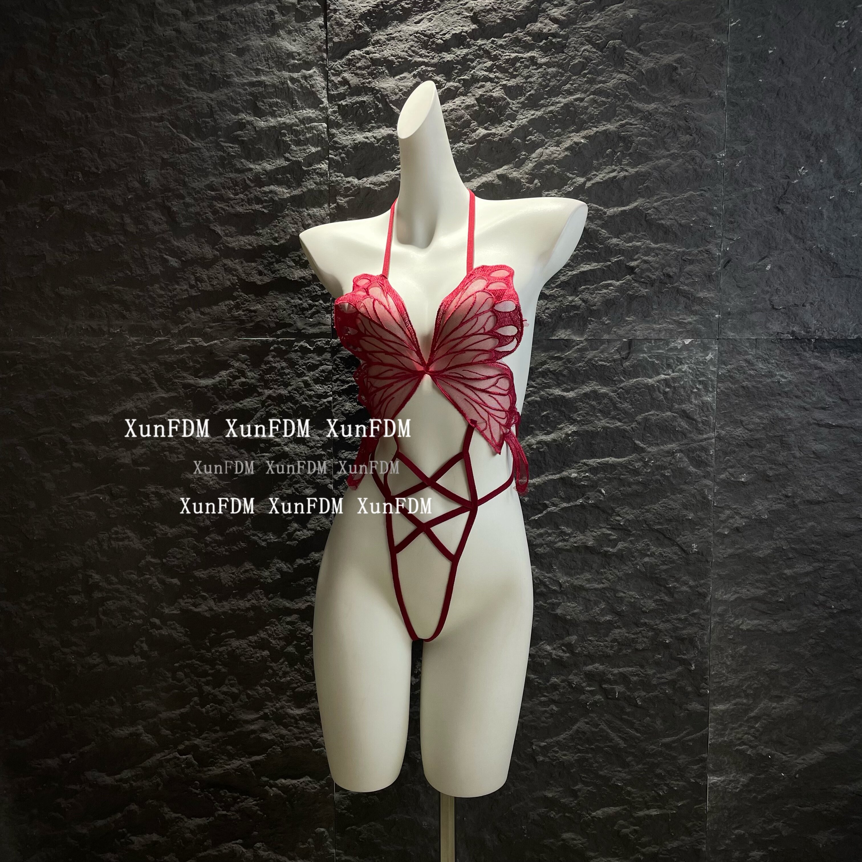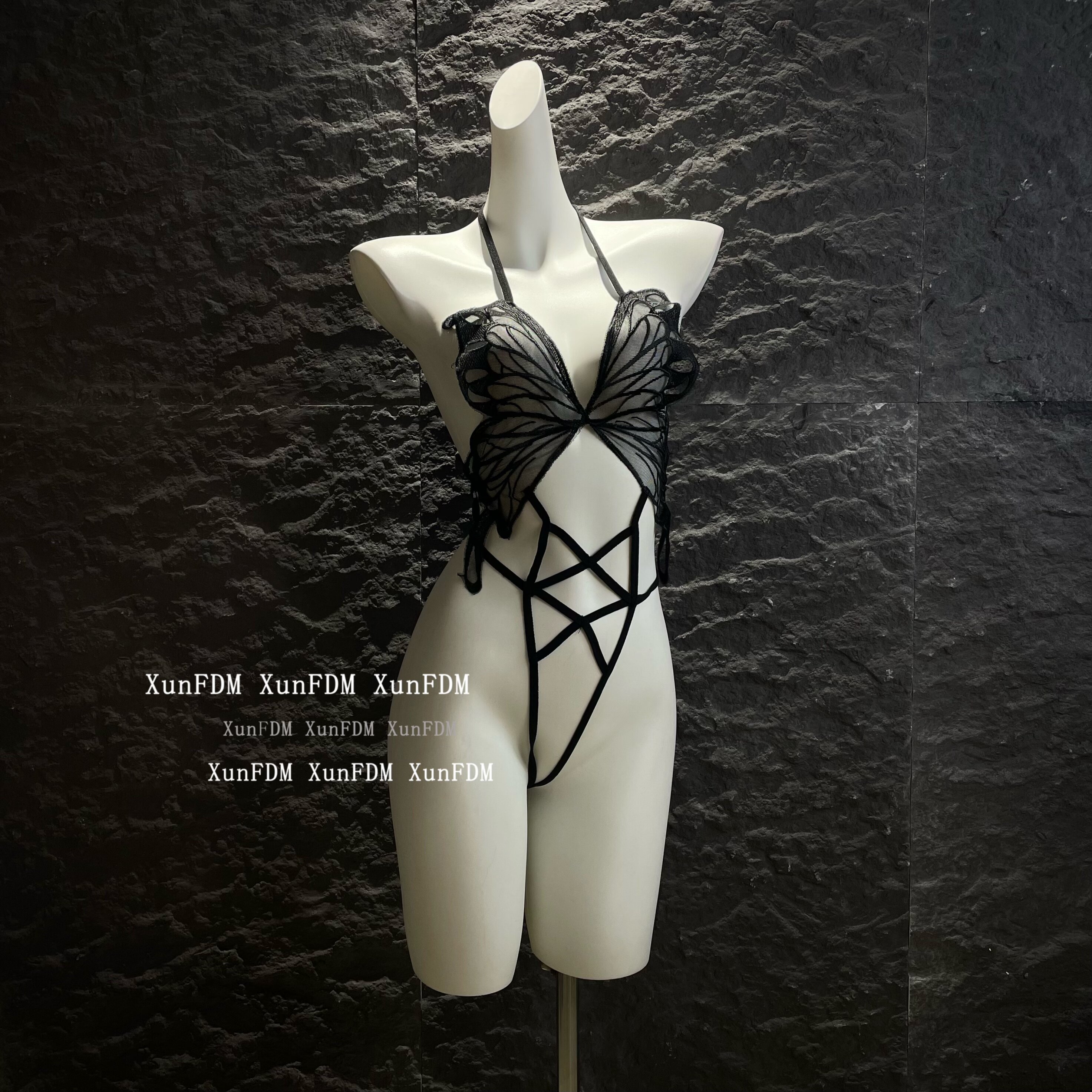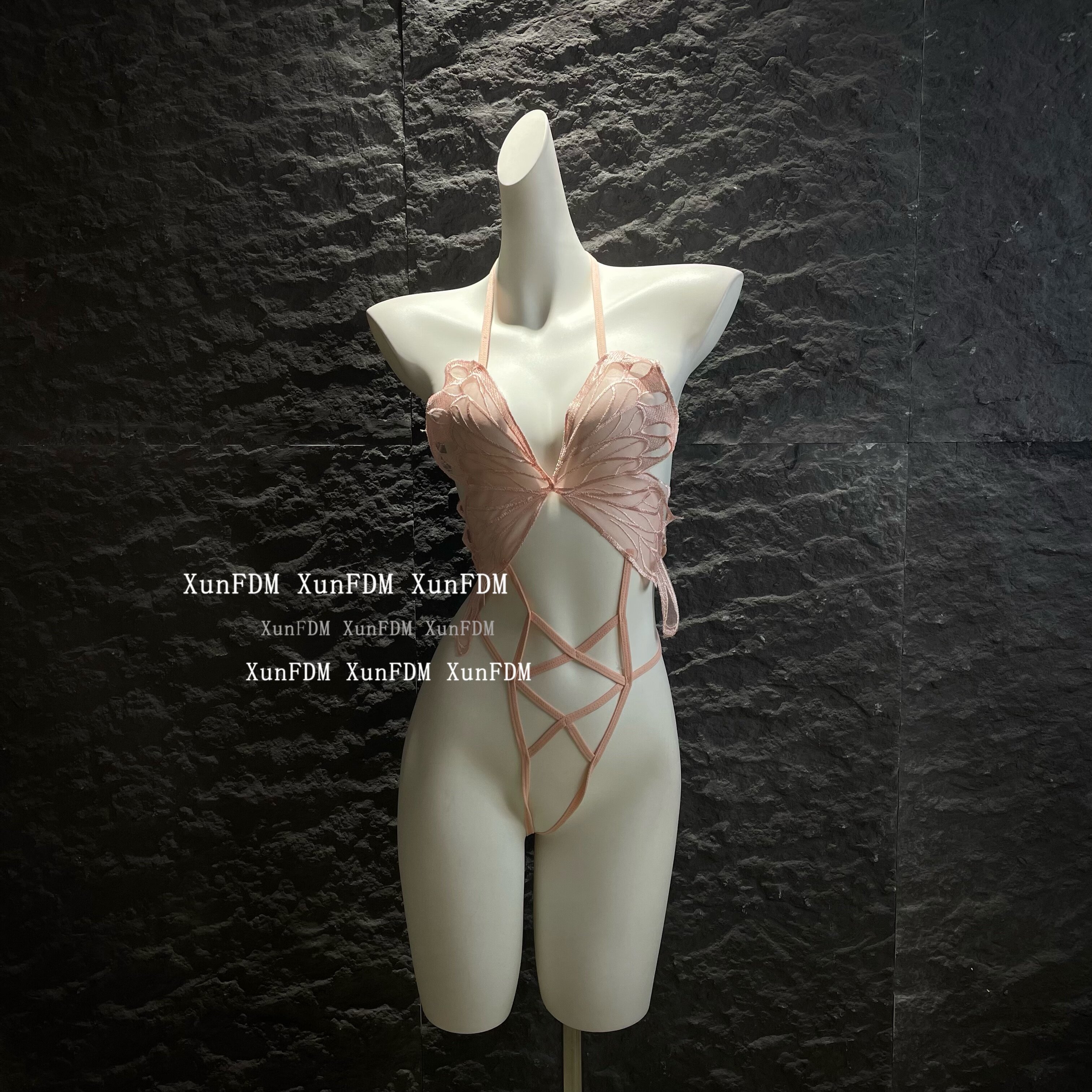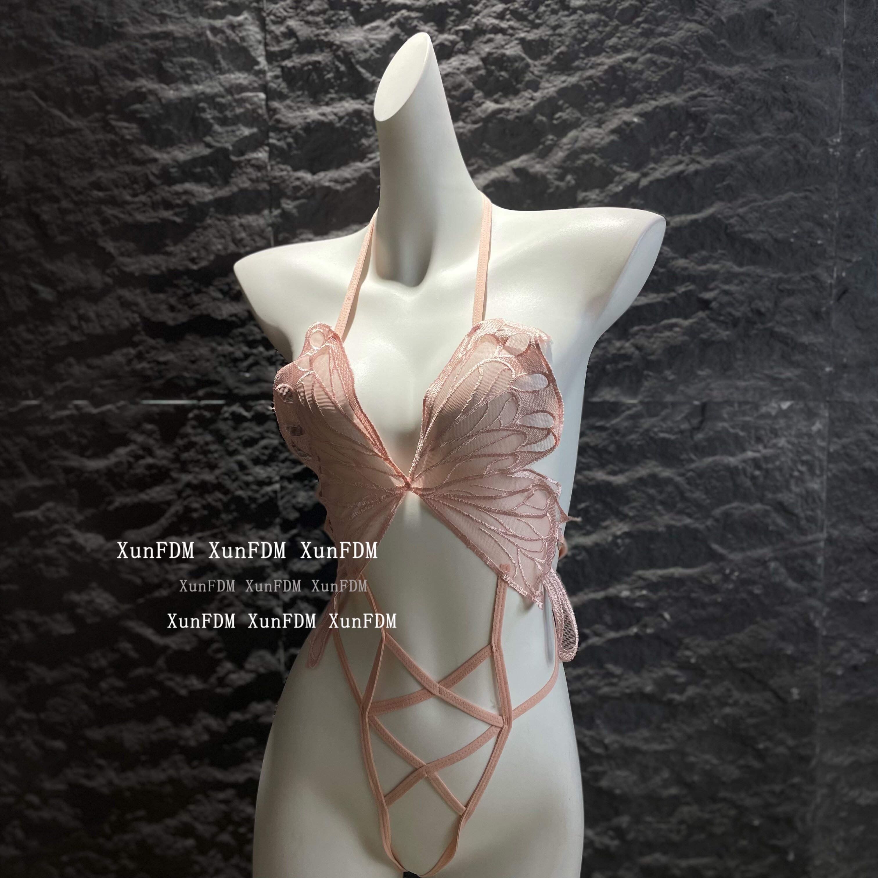 📚 驯服的猫 「花蝴蝶」性感纯欲蝴蝶镂空绑带网纱挂脖文胸套装