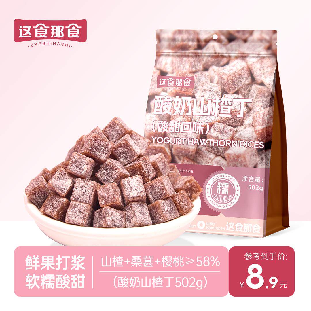 📚 这食那食酸奶山楂丁502g酸甜山楂果干果脯蜜饯网红休闲解馋小零食