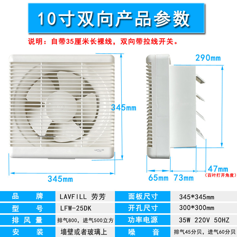 📚 双向玻璃橱窗排气扇进气扇换气扇 10寸方孔300x300mm 劳芳排风扇