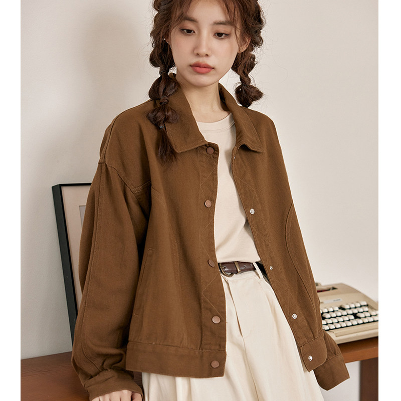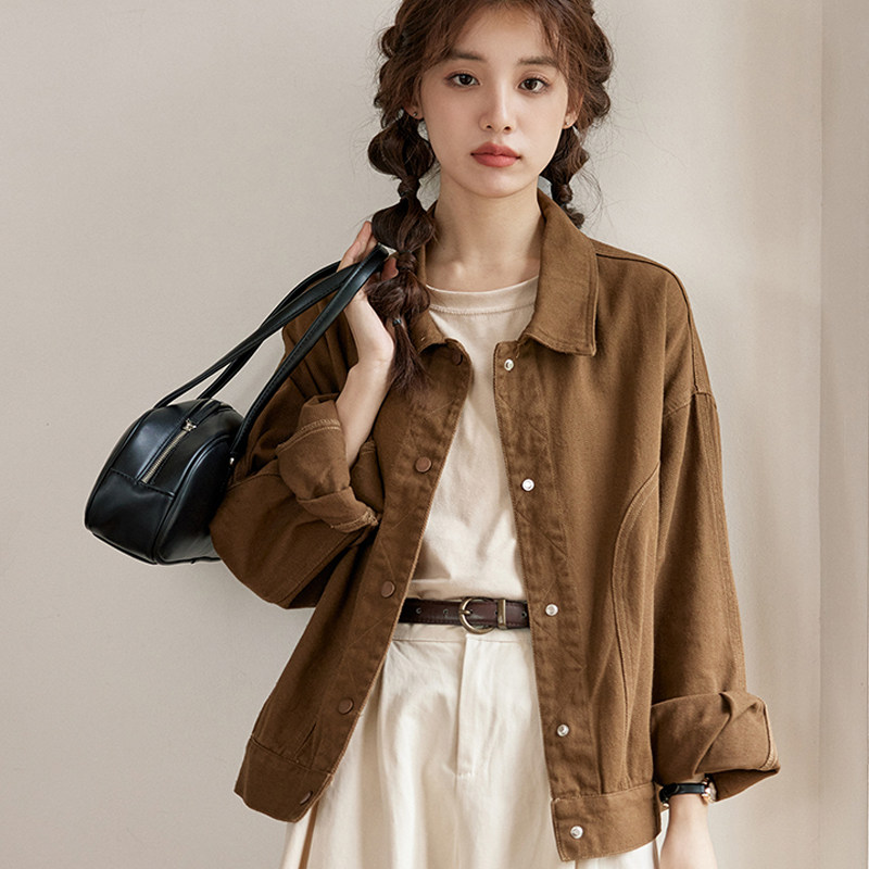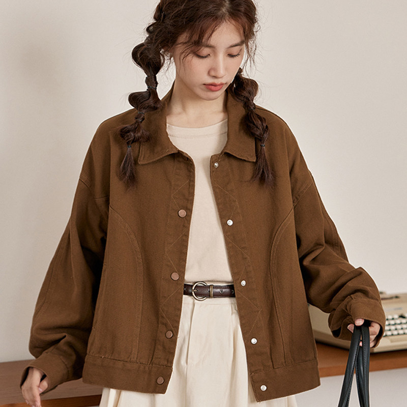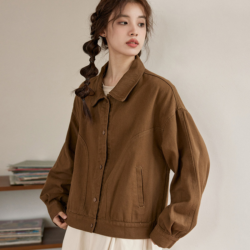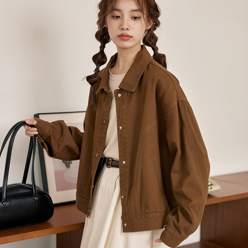 📚 2025新款春秋款牛仔外套女上衣韩系栗色牛仔外套夹克休闲工装百搭