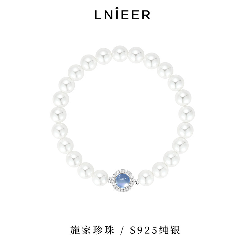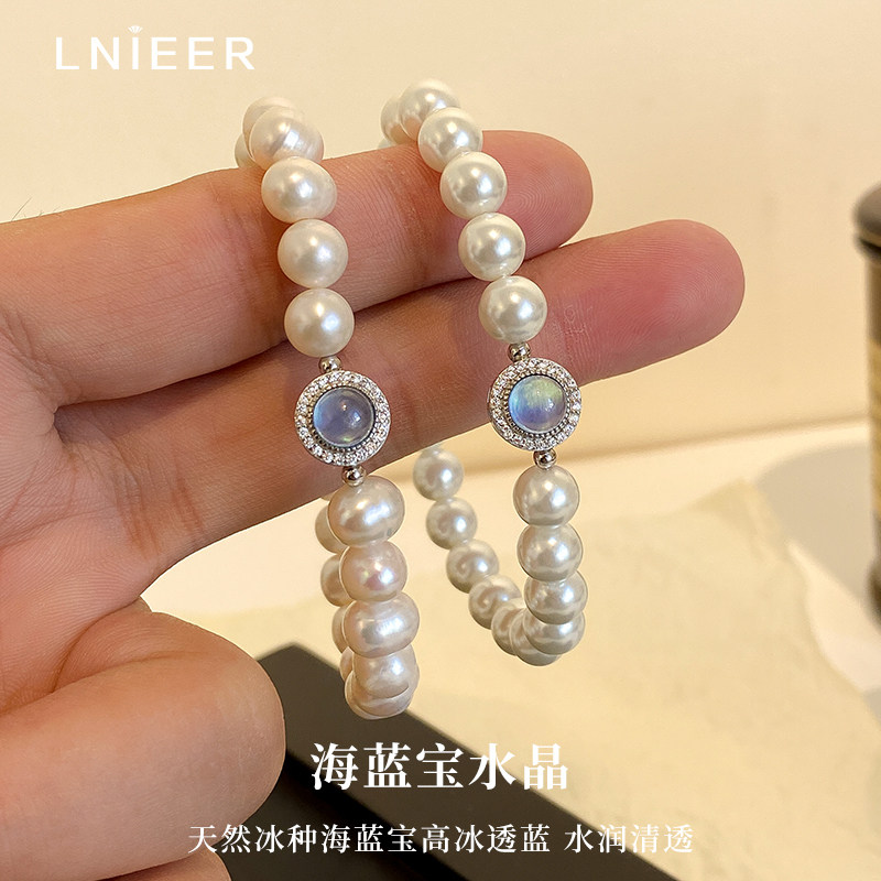 📚 925纯银海蓝宝天然淡水珍珠手链女款轻奢小众法式手镯手串送礼物