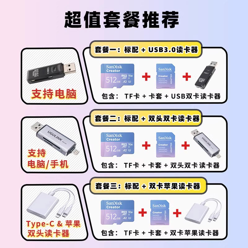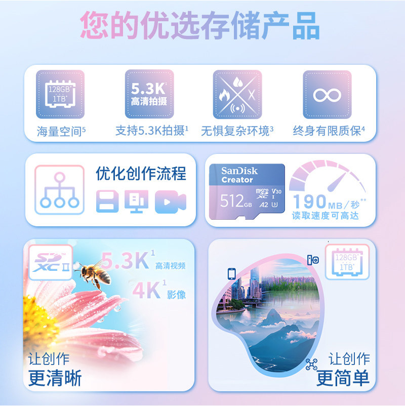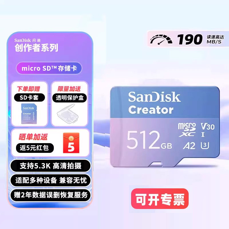 📚 闪迪创作者闪存卡tf储存卡512g运动相机SD内存卡影石acepro2