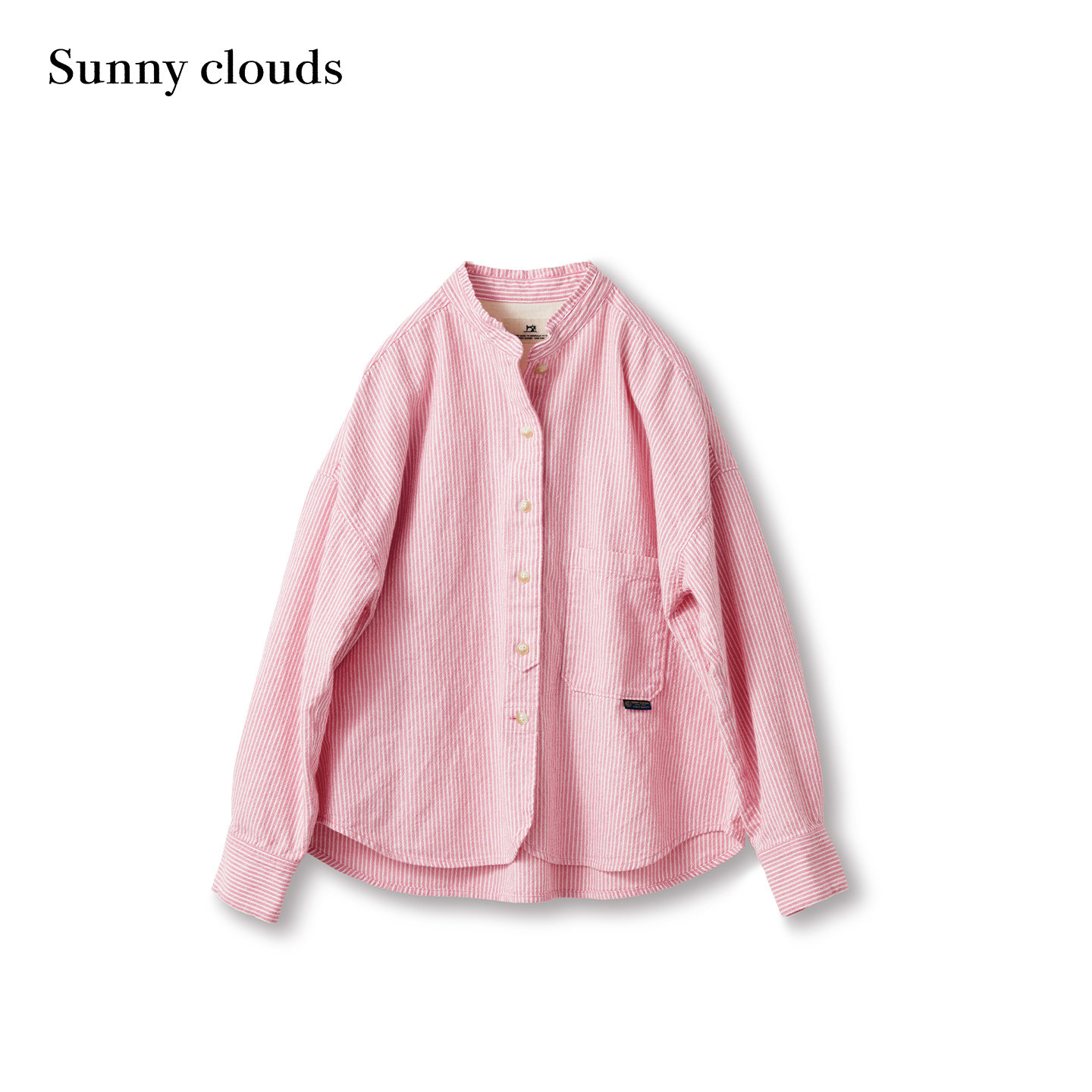 📚 春季新品 桑妮库拉/Sunny clouds女式纯棉立领落肩工装风条纹衬衫