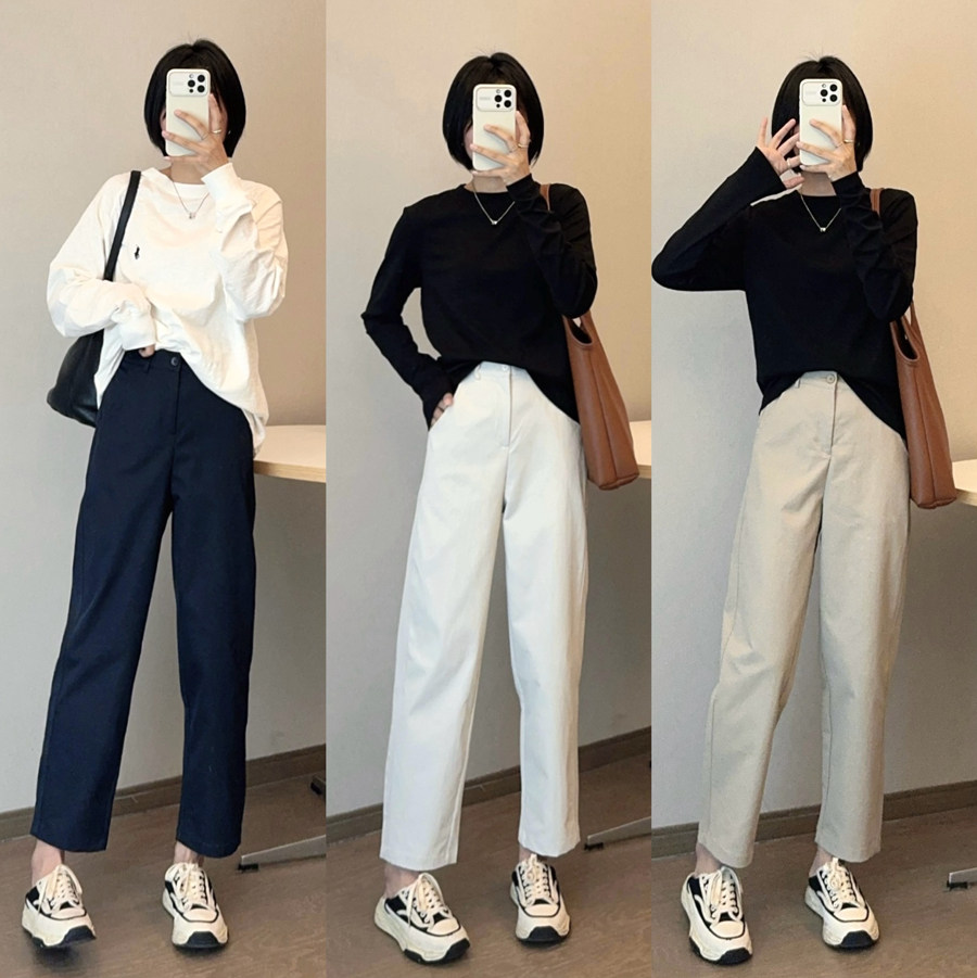 📚 【酒窝家】韩系纯色松紧宽松百搭休闲小个子西装哈伦烟管九分长裤