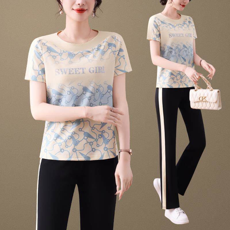 📚 时尚休闲运动套恤装女夏新款洋字母短步袖体长89899299裤跑服两件