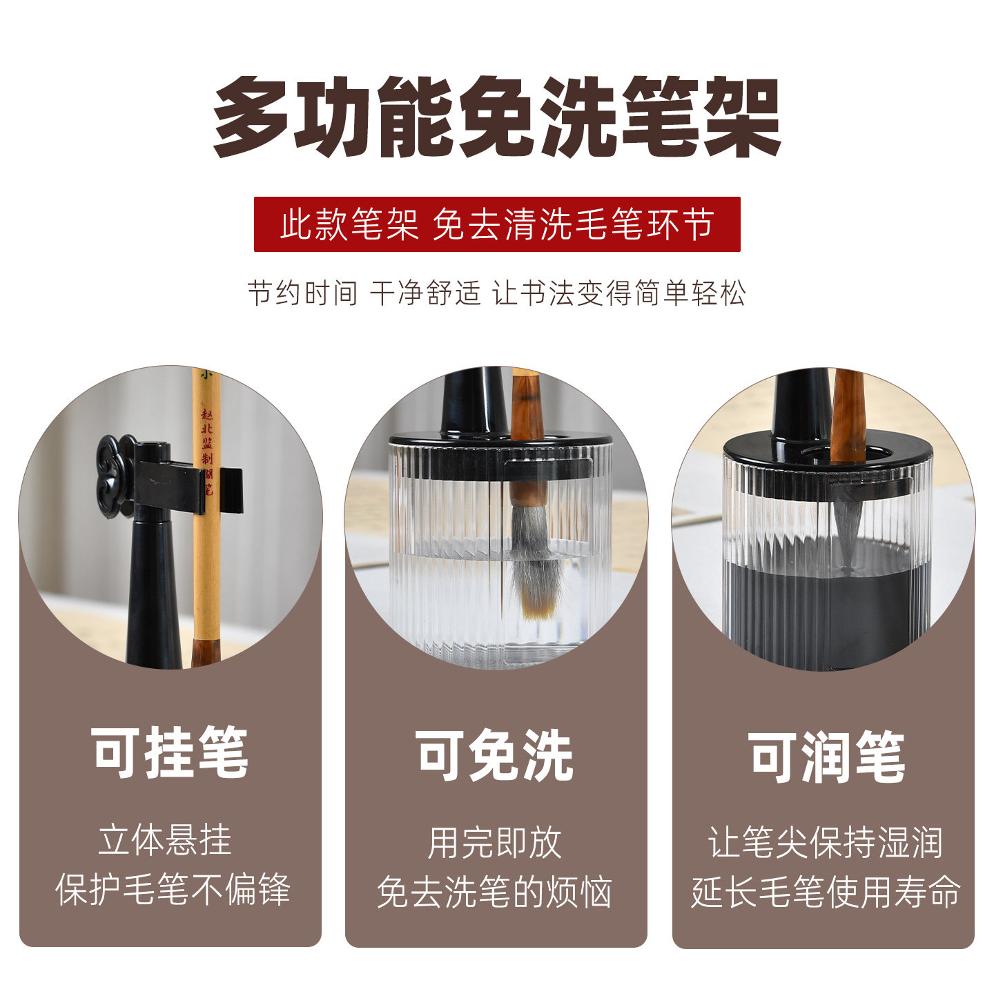 📚 笔挂免洗笔架洗笔器毛笔架展示架书法润笔器保湿多功能创意晾笔架