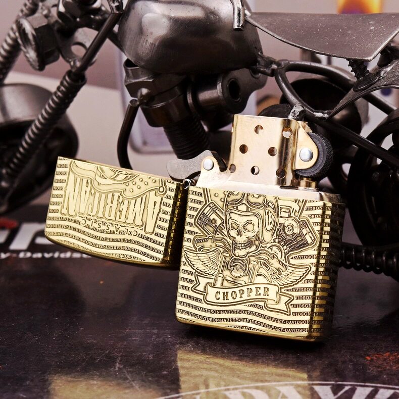 📚 正品ZIPPO芝宝防风打火机DIY纯铜环绕精雕HD哈雷逍遥骑士Chopper