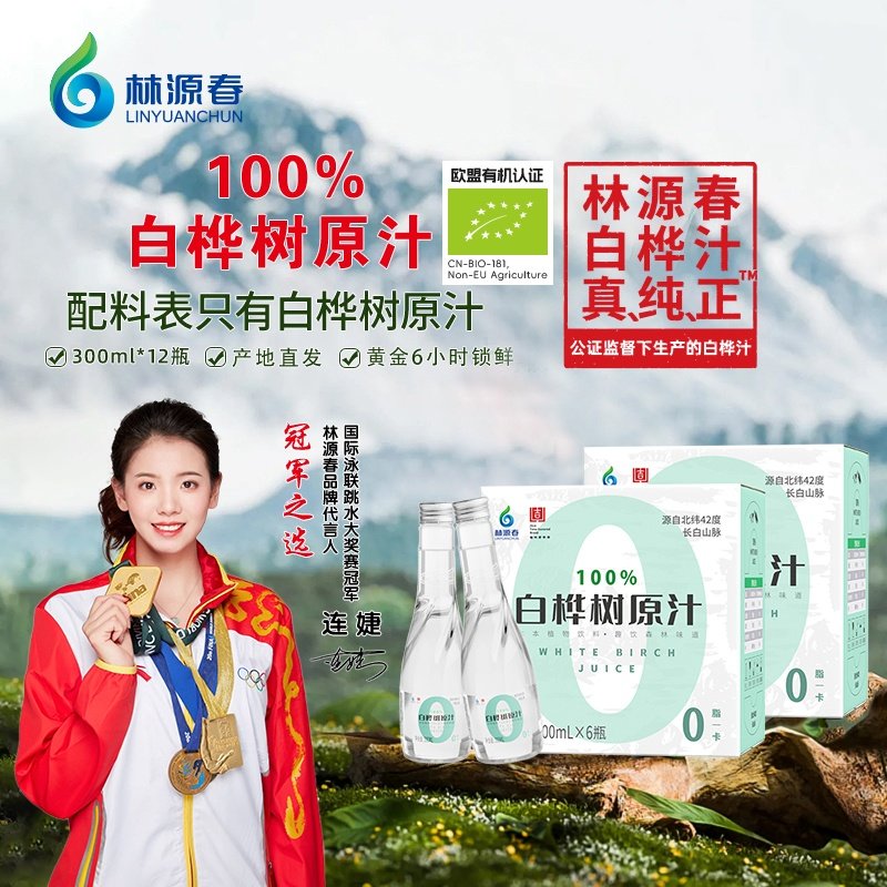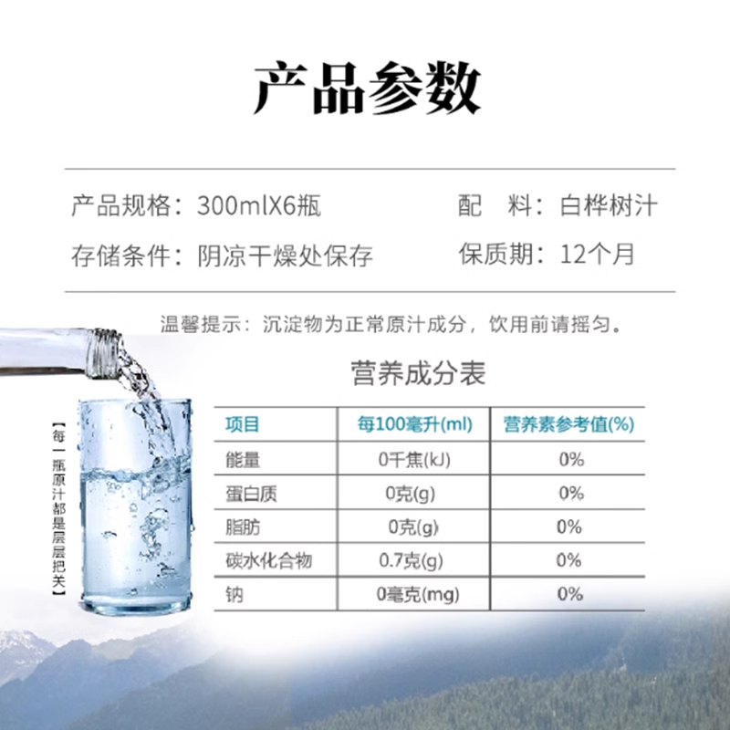 📚 林源春白桦树汁植物饮料300ml*12瓶100%白桦树原汁纯天然更健康