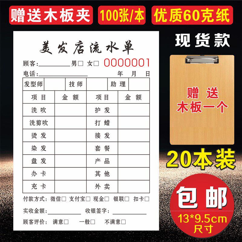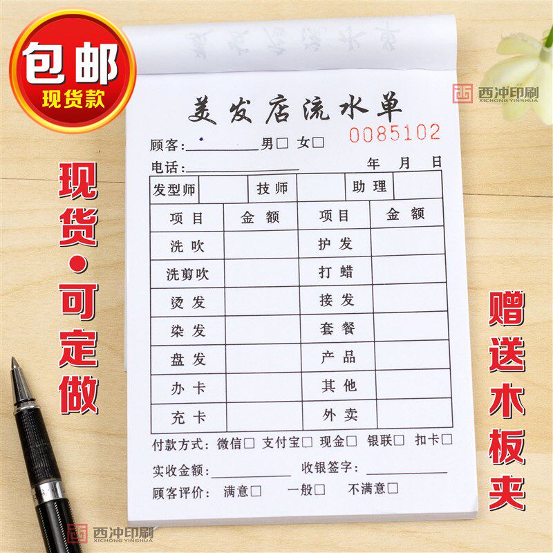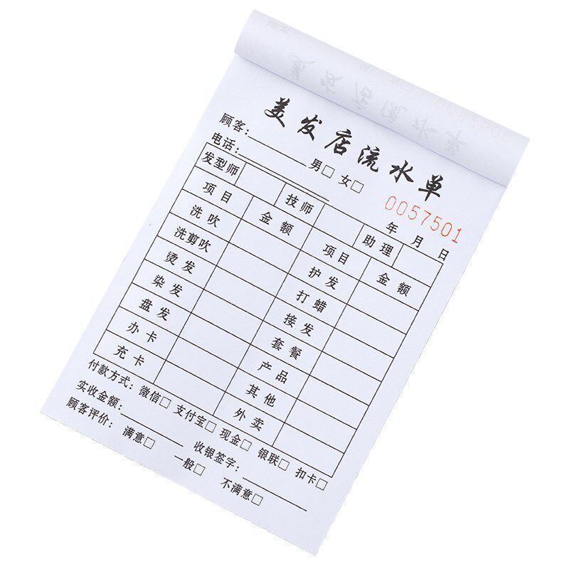 📚 美发流水单定制发廊服务单据收银记账本美容理发店消费开票开单本