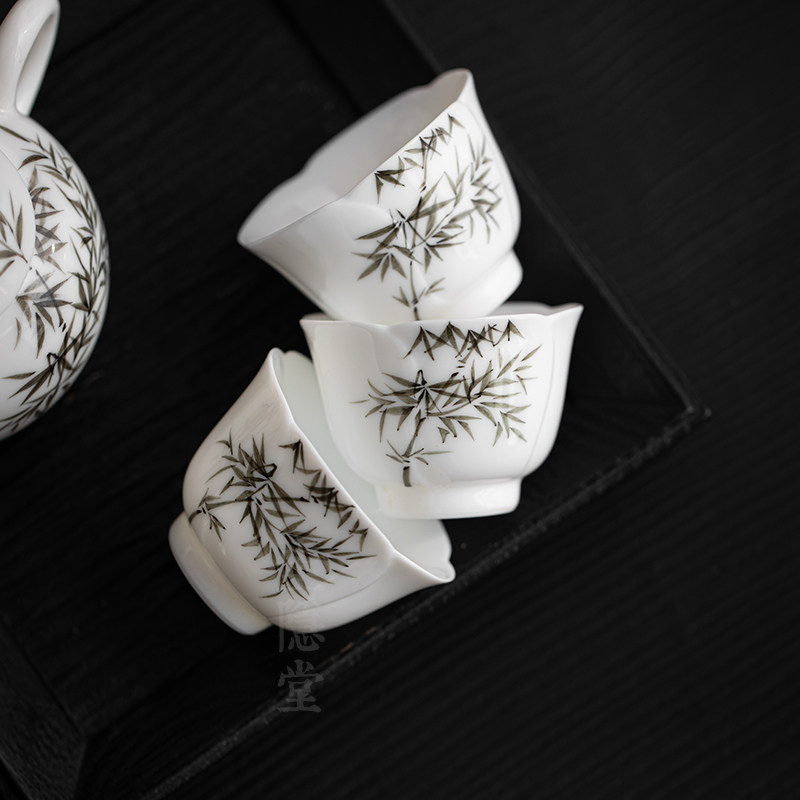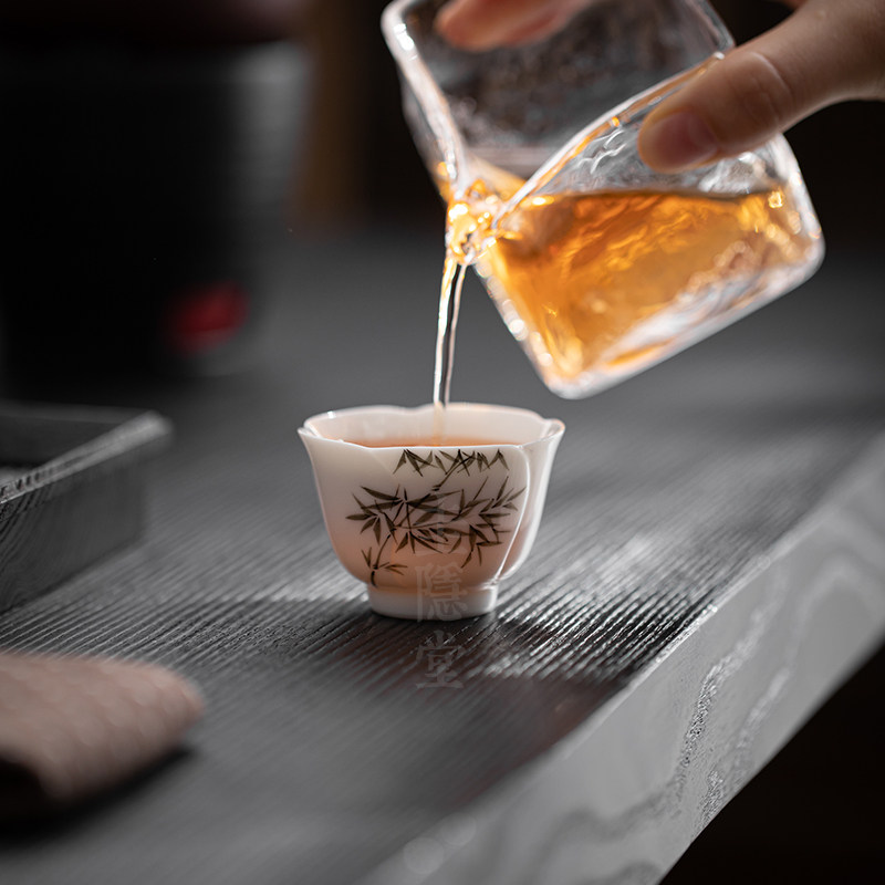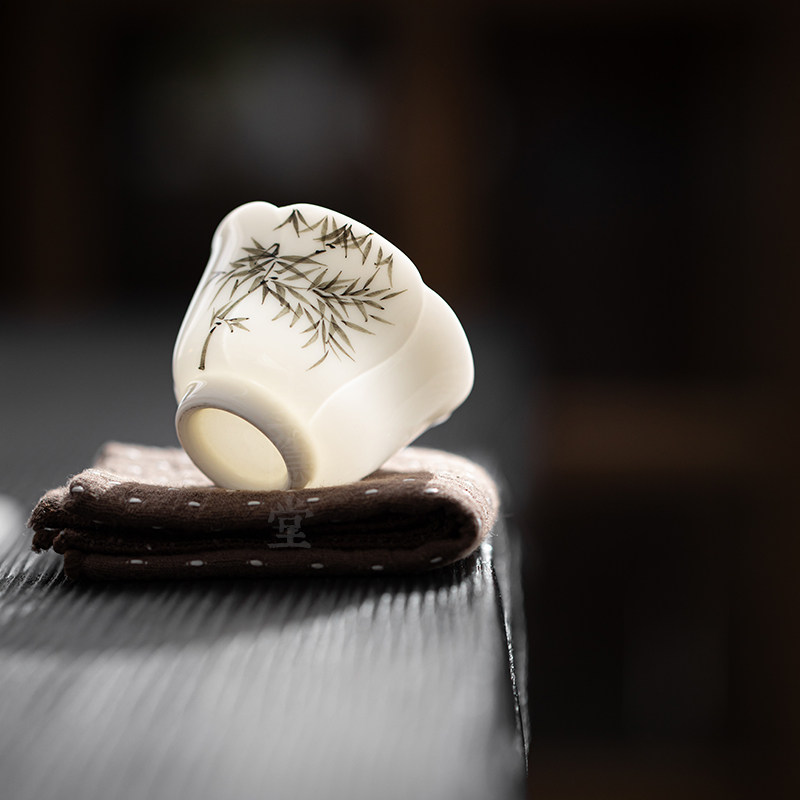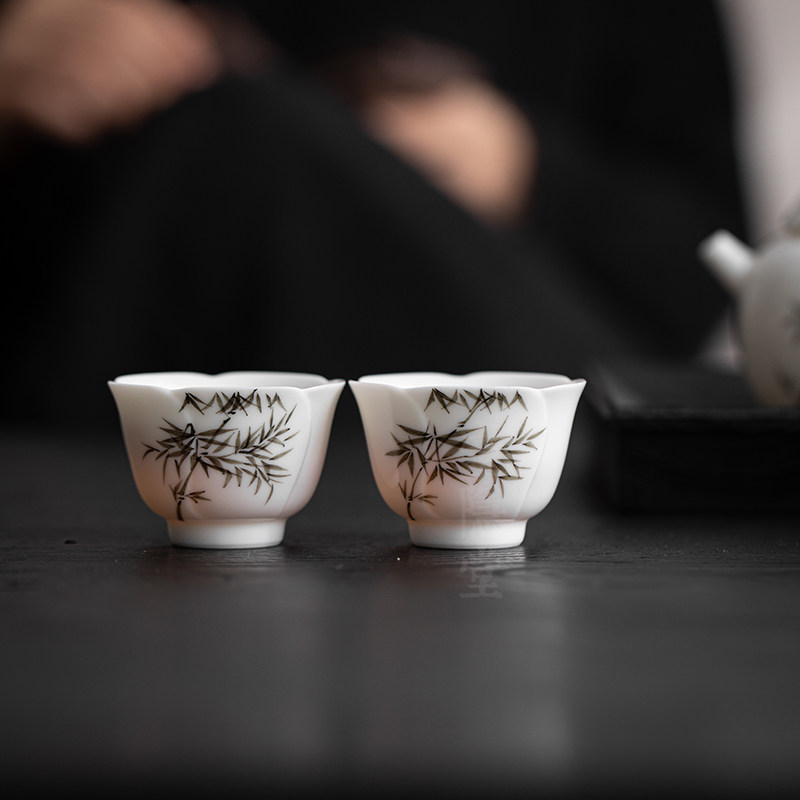 📚 圭隐堂纯手绘墨竹陶瓷功夫茶杯家用复古主人杯个人单杯品茗杯